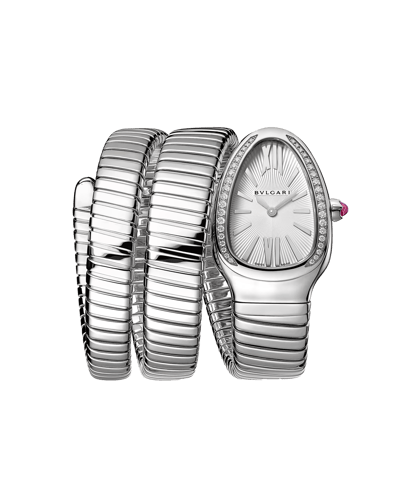 세르펜티 워치 컬렉션은 뱀에서 영감을 받은 유려한 곡선과 관능적인 실루엣이 특징인 불가리의 아이코닉 타임피스 라인이다. 손목을 감싸는 브레이슬릿 구조와 헤드 형태의 케이스 디자인이 조형미를 강조하며, 스틸·골드·다이아몬드 세팅 등 다
