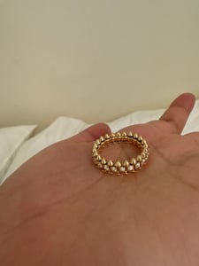 인기 많은 까르띠에 클래쉬드 링 반지 사이즈 팁 알려드릴게요🙌 까르띠에 클래쉬 드 링(Clash de Cartier)은 총알 모양의 독특한 디자인과 강렬한 존재감으로 사랑받는 아이템이에요. 하지만 디자인 특성상 일반적인 반지와 착용감이 조금 달라서 사이즈 문의가 매우 많은데요! [클래쉬드 링 사이즈 선택 가이드] ❶ 평소 착용 호수보다 한 사이즈 다운 클래쉬드 링은 안쪽 단면의 디테일이 면으로 채워지지 않은 디자인이에요. 무조건 한 사이즈는 다운하시는 것을 추천합니다. 👉 예: 평소 50호 착용 → 클래쉬드 링은 49호 추천 ❷ 손가락 컨디션 고려 손가락 굵기는 계절과 체온, 오전 붓기에 따라서도 개인 편차가 있다는 점을 고려하고 선택하는 것이 좋아요 - 여름보다는 겨울에 헐겁게 느껴질 수 있어요 - 오전보다는 오후에 헐겁게 느껴질 수 있어요 ❸ 사이즈 조정 불가 클래쉬드 링은 구조적으로 사이즈 조정(리사이징)이 어렵습니다. 따라서 구매 전에 본인 손가락 사이즈를 정확히 측정하고 결정하는 게 무엇보다 중요해요. 💡 Tip) 클래쉬드 링은 손가락 전체를 넓게 감싸는 느낌이 아니라, 디테일들이 손가락을 톡톡 잡아주는 구조예요. 그래서 더 안정적으로 착용하려면 '한 사이즈 다운'이 필요하다는 점, 꼭 기억하세요!