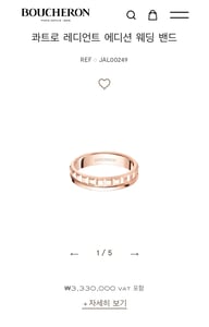 [부쉐론 콰트로 레디언트 에디션 웨딩 밴드 링] 상품이 최근 163만원에 거래되었어요.