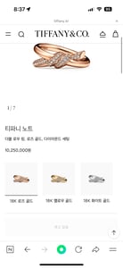 [티파니 노트 더블 로우 링] 상품이 최근 650만원에 거래되었어요.