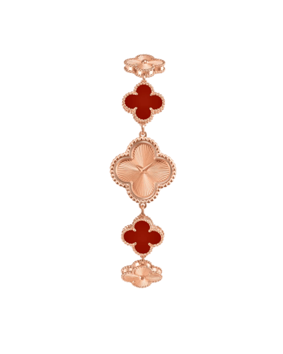 알함브라 워치는 브랜드의 아이코닉한 네잎 클로버 모티프를 다이얼에 적용한 주얼리 워치 컬렉션이다. 마더오브펄, 오닉스, 기요셰 골드 등 다양한 소재와 섬세한 골드 비즈 디테일이 조화를 이루며, 행운과 우아함의 상징으로 자리잡았다. 시