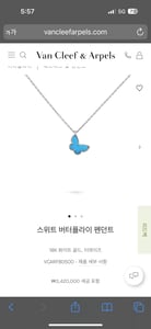 [반클리프 아펠 버터플라이 네크리스] 상품이 최근 270만원에 거래되었어요.