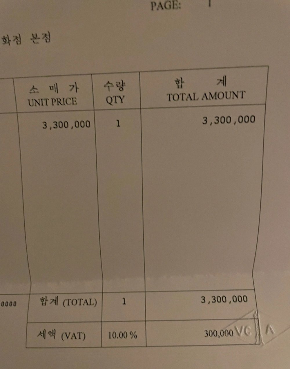 구입 시기, 구입 장소, 구입 당시 금액은 확인하기 어려움