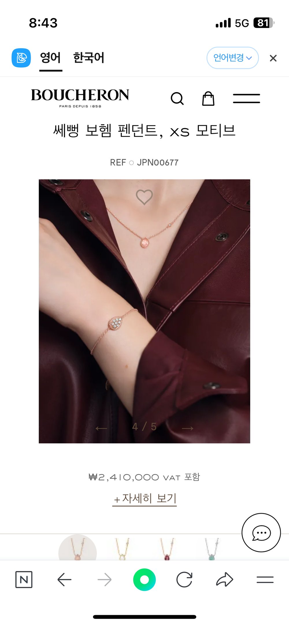 스몰 · 라지 모델까지 한 번에 끝내는 사이즈 가이드 레이어드된 밴드와 볼륨감 덕분에 존재감이 큰 콰트로 링은 웨딩 밴드로 데일리 착용할 때 특히 사이즈 선택이 중요해요. 모델에 따라 같은 호수라도 착용감이 달라지기 때문에 기본 웨딩 링, 스몰, 라지 모델을 나눠서 보는 것이 좋습니다. [사이즈 선택 가이드] ❶ 기본 콰트로 웨딩 링 안쪽 마감이 부드럽고, 손가락을 자연스럽게 감싸는 곡선 형태라 ✔️ 평소에 착용하는 정 사이즈로 편안하게 착용 가능해요. 👉 예: 평소 51호 착용 → 51호 추천 ❷ 콰트로 클래식 스몰 링 여러 코드가 한 번에 레이어드된 구조라 실제 착용감이평소 반지보다 살짝 타이트하게 느껴질 수 있습니다. ✔️ 평소 링 사이즈보다 한 사이즈 크게 선택을 추천해요. 👉 예: 평소 51호 착용 → 스몰 링 52호 추천 ❸ 콰트로 클래식 라지 링 밴드 폭이 가장 넓고 손가락을 감싸는 면적이 크기 때문에 정사이즈로 맞추면 끼우고 뺄 때 답답할 수 있어요. 손가락 옆면과 아랫부분까지 넓게 닿으면서 움직임이 제한되고, 실제 호수보다 더 작게 느껴지는 편입니다. ✔️ 평소 링 사이즈보다 두 사이즈 크게 선택을 권장해요. 👉 예: 평소 51호 착용 → 라지 링 53호 추천 [왜 스몰은 한 사이즈, 라지는 두 사이즈 업이 필요할까] - 링의 폭과 손가락이 닿는 면적 때문인데요. 링 폭이 두꺼워질수록 손가락과 맞닿는 면이 넓어지고 같은 호수라도 더 타이트하게 느껴지게 됩니다. - 콰트로처럼 폭이 넓은 링은 손가락을 둥글게 감싸며 반듯하게 고정되는 형태라, 마디를 통과할 때나 손을 쥐었다 폈다 할 때 더 끼는 느낌이 강해져요. - 여기에 더해, 계절, 온도, 개인별 붓기 차이 때문에 볼륨감이 큰 스몰, 라지는 여유있는 사이즈 선택하는게 오래 착용하해도 편안하고, 손가락 라인도 더 예쁘게 정리되어 보여요. 💡페이브릴 Tip) 콰트로 스몰 모델을 보고 있다면 →평소 호수보다 한 사이즈 크게 콰트로 라지 모델을 보고 있다면 →평소 호수보다 두 사이즈 크게 ________________________________________________ 💭FAQ Q. 콰트로 링은 사이즈 조정이 가능한가요? A. 밴드 전체에 패턴이 반복되는 구조라 사이즈 조절이 불가해요. 사이즈 수선이 어려운 디자인이기 때문에, 구매 시 계절과 온도, 개인의 붓기 정도를 함께 고려해 호수를 신중하게 선택하는 것이 중요해요. Q. 웨딩링으로 가장 인기있는 콰트로 링은 무엇인가요? A. 부쉐론 클래식 콰트로링 4단 다이아 모델이 가장 인기 있어요. - 일반적으로 여성분은 다이아가 세팅된 클래식 콰트로 링, - 남성분은 다이아가 없는 클래식 콰트로 링 조합으로 많이 선택하세요. Q. 콰트로 색상은 어떤 컬러가 인기가 많나요? A. 콰트로 컬렉션은 다양한 컬러와 소재를 조합한 디자인이 특징입니다. - 브라운 PVD(클래식) : 캐주얼 스타일과 포멀한 룩 모두에게 잘 어울려 활용도가 높아요. - 화이트 세라믹(화이트 에디션) : 밝고 여성스러운 분위기를 선호하시는 분들께 인기입니다. - 블랙 PVD(블랙 에디션) : 강렬하고 모던한 무드를 주어 존재감 있는 포인트 링으로 좋습니다. Q. 콰트로 링 착용팁이 있을까요? A. 기본 웨딩 밴드와 가드링을 레이어링하면, 콰트로 스몰 모델을 보다 부담 없이 연출할 수 있어요 - 클루 드 파리, 그로그랭, 다이아 가드링 디자인을 가드링으로 많이 찾으세요. 가드 링만 단독으로 착용해도 캐주얼한 느낌을 줄 수 있고, 상황에 따라 다른 가드 링을 함께 레이어링하면 두께감 있는 스몰 모델을 착용한 듯한 느낌으로 연출할 수 있습니다.