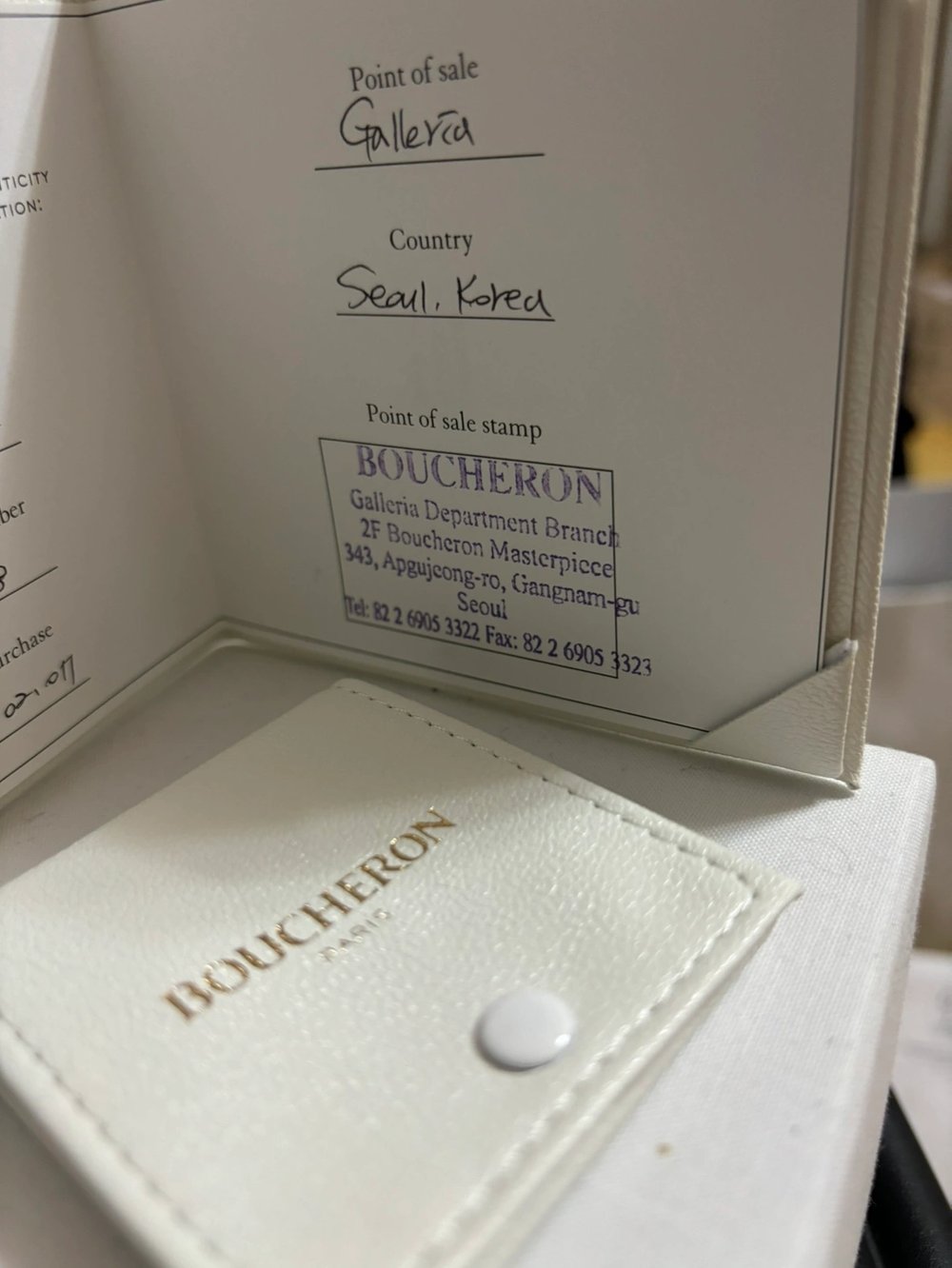 부쉐론 보증서는 재발급이 되지 않아요. 분실하면 수선·세척 서비스 이용이 어려울 수 있으니 꼭 잘 보관해 주세요. 예쁜 주얼리, 오래오래 반짝이고 싶다면 오늘 알려드린 A/S 팁 꼭 챙겨가세요! ☺️
