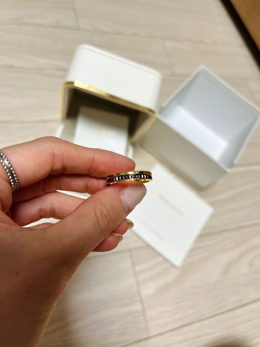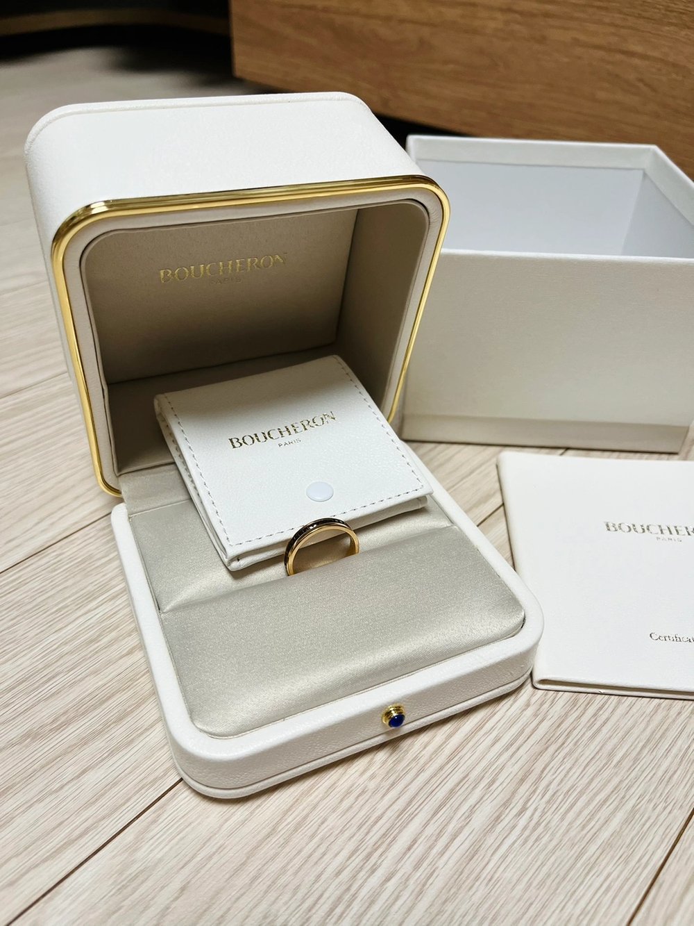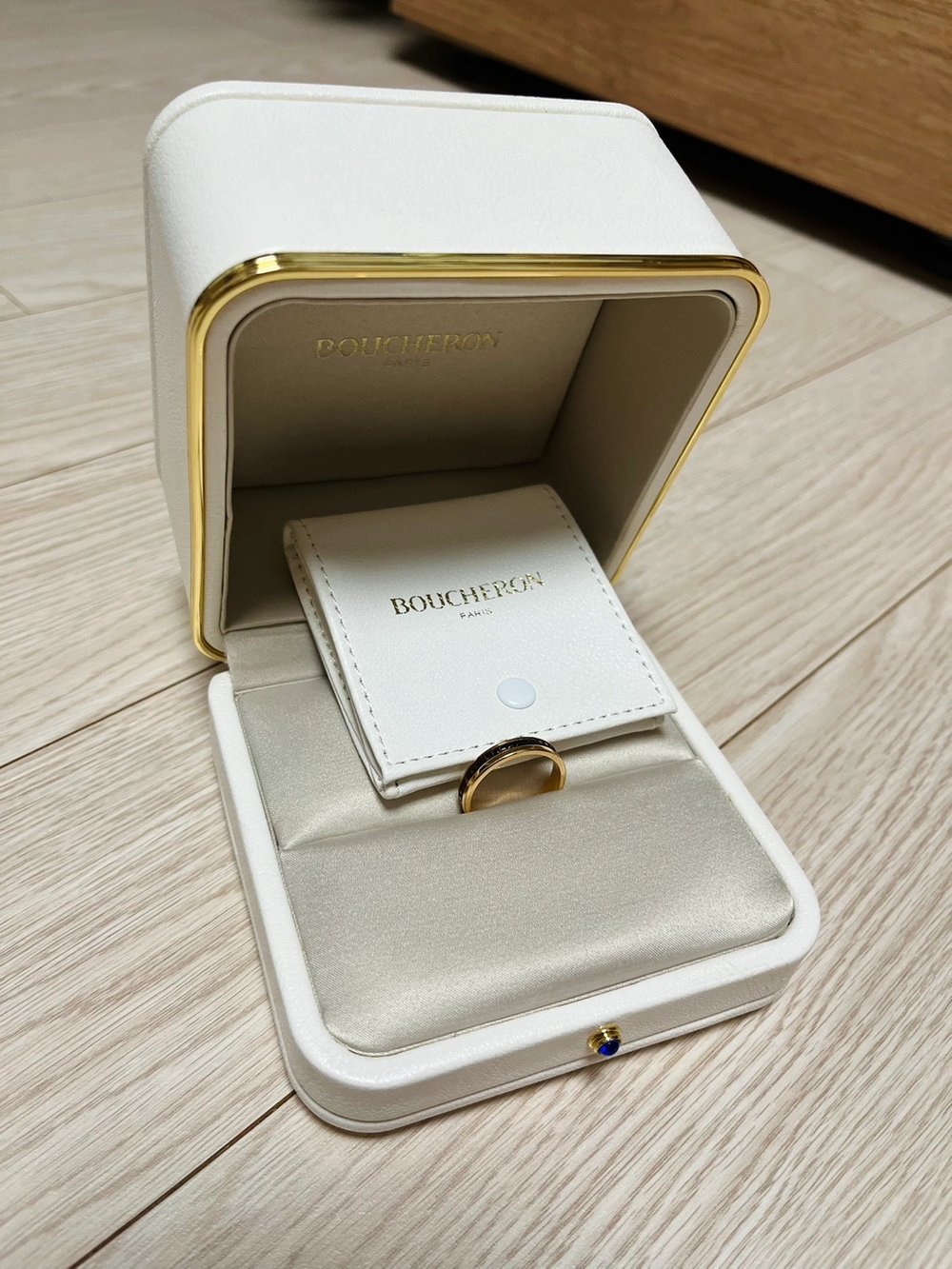 스몰 · 라지 모델까지 한 번에 끝내는 사이즈 가이드 레이어드된 밴드와 볼륨감 덕분에 존재감이 큰 콰트로 링은 웨딩 밴드로 데일리 착용할 때 특히 사이즈 선택이 중요해요. 모델에 따라 같은 호수라도 착용감이 달라지기 때문에 기본 웨딩 링, 스몰, 라지 모델을 나눠서 보는 것이 좋습니다. [사이즈 선택 가이드] ❶ 기본 콰트로 웨딩 링 안쪽 마감이 부드럽고, 손가락을 자연스럽게 감싸는 곡선 형태라 ✔️ 평소에 착용하는 정 사이즈로 편안하게 착용 가능해요. 👉 예: 평소 51호 착용 → 51호 추천 ❷ 콰트로 클래식 스몰 링 여러 코드가 한 번에 레이어드된 구조라 실제 착용감이평소 반지보다 살짝 타이트하게 느껴질 수 있습니다. ✔️ 평소 링 사이즈보다 한 사이즈 크게 선택을 추천해요. 👉 예: 평소 51호 착용 → 스몰 링 52호 추천 ❸ 콰트로 클래식 라지 링 밴드 폭이 가장 넓고 손가락을 감싸는 면적이 크기 때문에 정사이즈로 맞추면 끼우고 뺄 때 답답할 수 있어요. 손가락 옆면과 아랫부분까지 넓게 닿으면서 움직임이 제한되고, 실제 호수보다 더 작게 느껴지는 편입니다. ✔️ 평소 링 사이즈보다 두 사이즈 크게 선택을 권장해요. 👉 예: 평소 51호 착용 → 라지 링 53호 추천 [왜 스몰은 한 사이즈, 라지는 두 사이즈 업이 필요할까] - 링의 폭과 손가락이 닿는 면적 때문인데요. 링 폭이 두꺼워질수록 손가락과 맞닿는 면이 넓어지고 같은 호수라도 더 타이트하게 느껴지게 됩니다. - 콰트로처럼 폭이 넓은 링은 손가락을 둥글게 감싸며 반듯하게 고정되는 형태라, 마디를 통과할 때나 손을 쥐었다 폈다 할 때 더 끼는 느낌이 강해져요. - 여기에 더해, 계절, 온도, 개인별 붓기 차이 때문에 볼륨감이 큰 스몰, 라지는 여유있는 사이즈 선택하는게 오래 착용하해도 편안하고, 손가락 라인도 더 예쁘게 정리되어 보여요. 💡페이브릴 Tip) 콰트로 스몰 모델을 보고 있다면 →평소 호수보다 한 사이즈 크게 콰트로 라지 모델을 보고 있다면 →평소 호수보다 두 사이즈 크게 ________________________________________________ 💭FAQ Q. 콰트로 링은 사이즈 조정이 가능한가요? A. 밴드 전체에 패턴이 반복되는 구조라 사이즈 조절이 불가해요. 사이즈 수선이 어려운 디자인이기 때문에, 구매 시 계절과 온도, 개인의 붓기 정도를 함께 고려해 호수를 신중하게 선택하는 것이 중요해요. Q. 웨딩링으로 가장 인기있는 콰트로 링은 무엇인가요? A. 부쉐론 클래식 콰트로링 4단 다이아 모델이 가장 인기 있어요. - 일반적으로 여성분은 다이아가 세팅된 클래식 콰트로 링, - 남성분은 다이아가 없는 클래식 콰트로 링 조합으로 많이 선택하세요. Q. 콰트로 색상은 어떤 컬러가 인기가 많나요? A. 콰트로 컬렉션은 다양한 컬러와 소재를 조합한 디자인이 특징입니다. - 브라운 PVD(클래식) : 캐주얼 스타일과 포멀한 룩 모두에게 잘 어울려 활용도가 높아요. - 화이트 세라믹(화이트 에디션) : 밝고 여성스러운 분위기를 선호하시는 분들께 인기입니다. - 블랙 PVD(블랙 에디션) : 강렬하고 모던한 무드를 주어 존재감 있는 포인트 링으로 좋습니다. Q. 콰트로 링 착용팁이 있을까요? A. 기본 웨딩 밴드와 가드링을 레이어링하면, 콰트로 스몰 모델을 보다 부담 없이 연출할 수 있어요 - 클루 드 파리, 그로그랭, 다이아 가드링 디자인을 가드링으로 많이 찾으세요. 가드 링만 단독으로 착용해도 캐주얼한 느낌을 줄 수 있고, 상황에 따라 다른 가드 링을 함께 레이어링하면 두께감 있는 스몰 모델을 착용한 듯한 느낌으로 연출할 수 있습니다.
