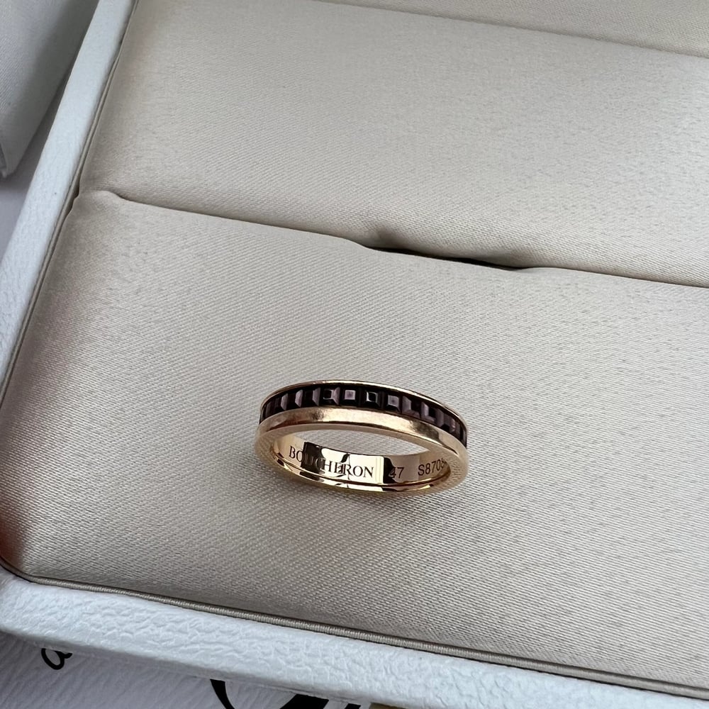 부쉐론 콰트로 레디언트 에디션 클루 드 파리 웨딩 밴드 링로즈/핑크골드, 풀 파베, 49호