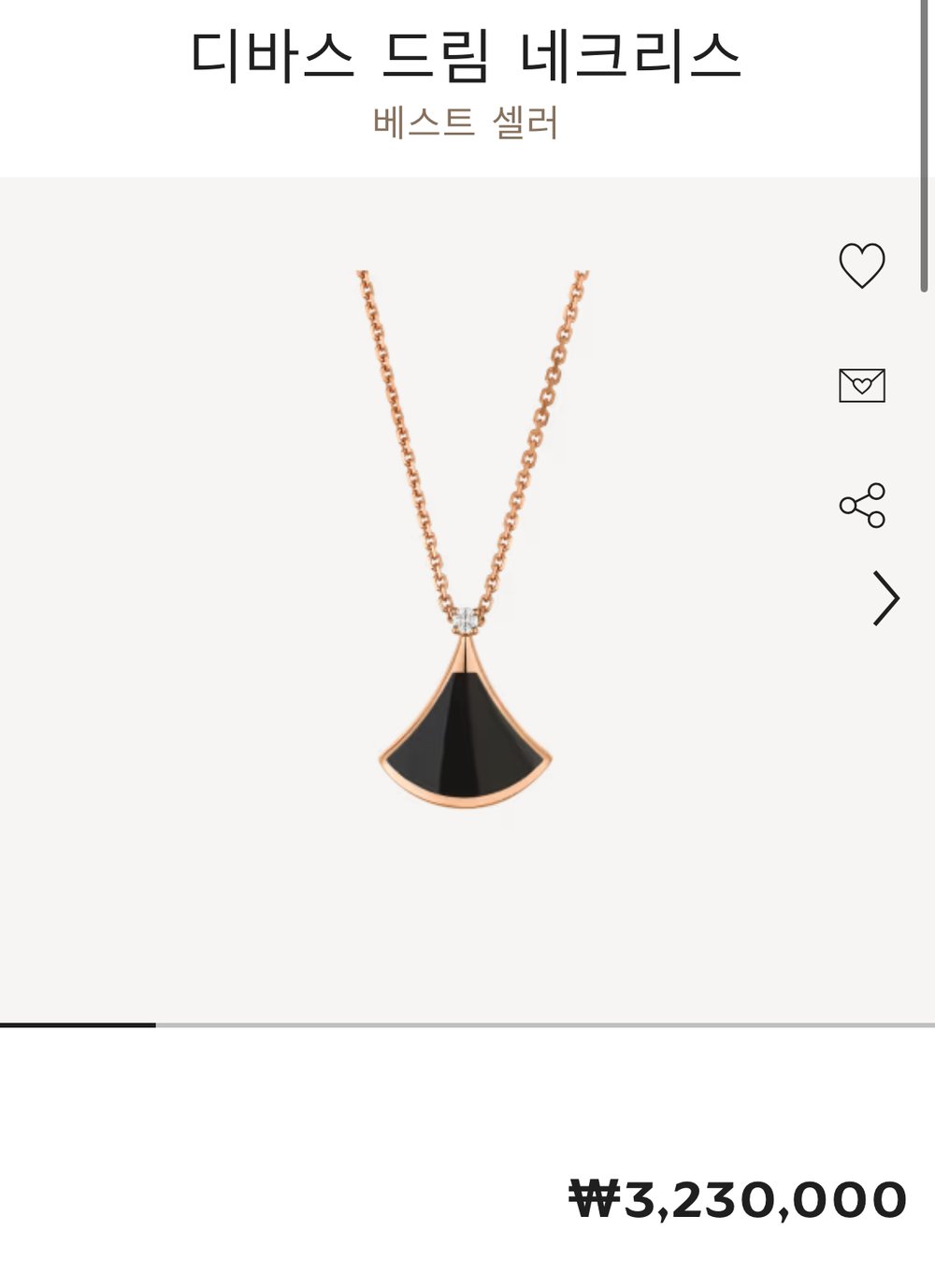 11월 10일 불가리 인상 앞두고 위시템 중에 최종적으로 디바스드림과 불가리불가리 목걸이 두 개를 엄청 고민했어요. 그러다가 결국은 인상되고 나서 땅을 치고 후회했죠. 디바스드림 살껄하고요. 10만원 정도만 인상되긴 했지만 그래도 10만원 더 주고 사는거 같아 뭔가 손해보는거 같고 너~무 아깝더라고요. 몇 개월동안 페이브릴 매일 드나들며 눈으로 보기만 하다가 결국은 페이브릴에서 디바스드림에서 구입했어요. ❤️ 너무 걱정했는데 배송 전 실물 사진도 다각도로 촬영해서 보내주시고 제 컨펌 이후 최종 배송 확정주시더라고요. 말이 너무 길었지만, 페이브릴 사랑입니다 ❤️🤍 구매부터 배송까지 완벽했어요. 다음 주얼리도 저는 페이브릴 이용할 계획이에요. 두 가지 제안드리면, 구매시기와 구매가격이 무조건 노출되면 좋겠어요. 같이 제공해주면 구매 결정에 큰 도움이 될 것 같아요. 그리고 실물 사진도 무조건 10 장 이상 제공해주시면 좋겠어요. 부분이 개선 되면 좋겠습니다.
