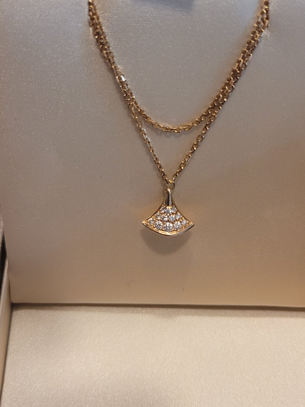 양쪽면 파베라 펜던트 뒤집혀도 똑같아 이쁘고, 두줄체인에 디바스 체인의 반짝임이 좋고 디테일도 예뻐요.