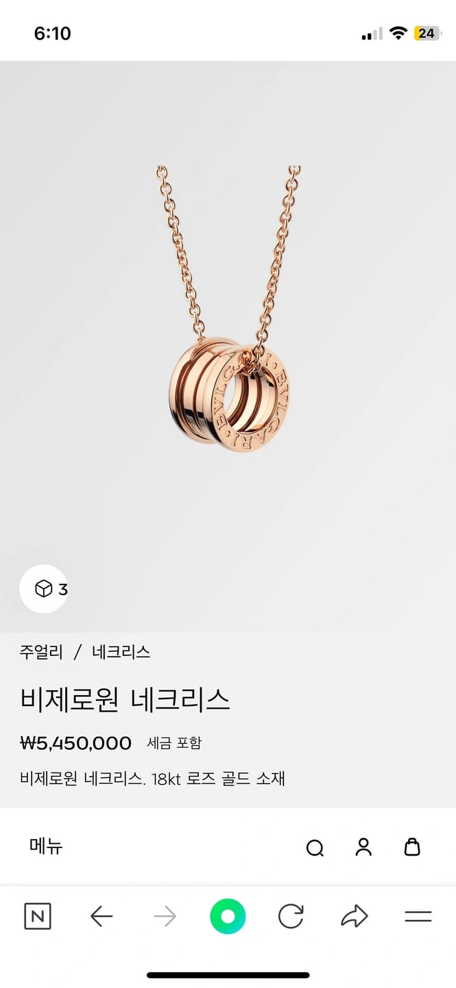 불가리 비 제로 원 레전드 네크리스로즈/핑크골드
