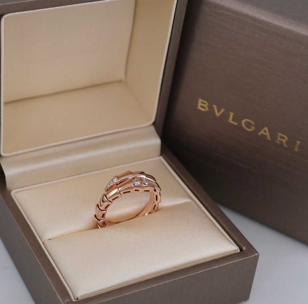 불가리 세르펜티 바이퍼 링로즈/핑크골드, 세미 파베, M size / 51-53