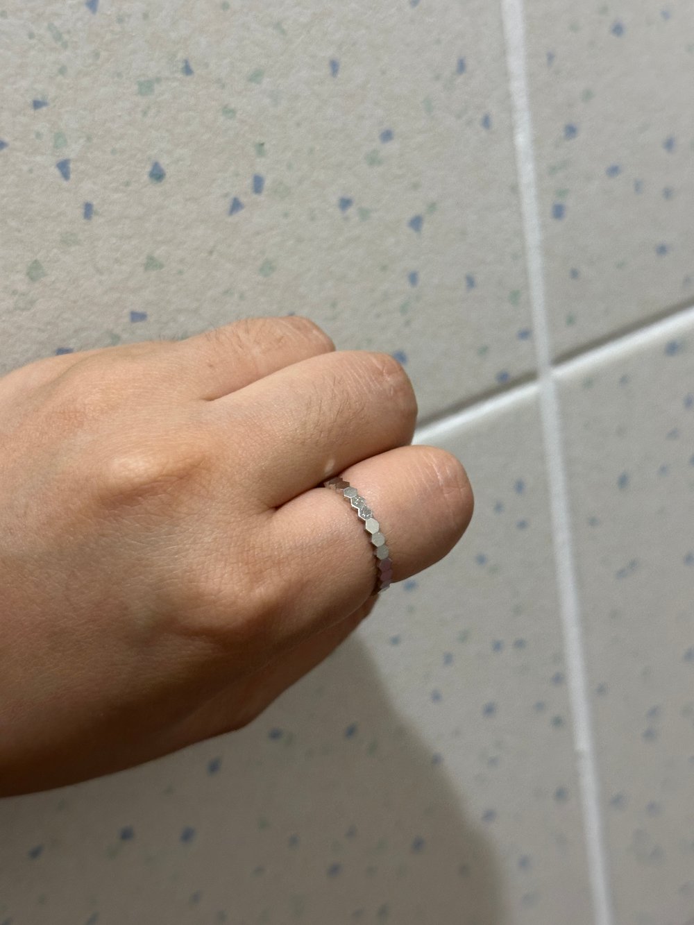 넘예쁘고 얇아보이지만 존재감 확실하구용 다른 반지랑 레이어드해도 잘맞는거 같아용 !