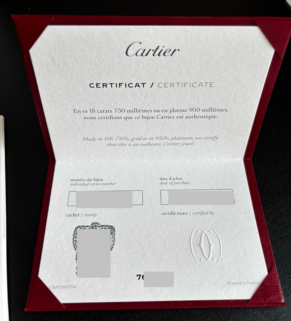 까르띠에 러브 브레이슬릿클래식, 화이트골드,