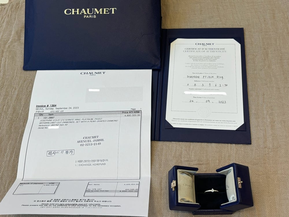 쇼메 원래 너무 좋아해서 똑같은거 터키석 버전도 있는데, 풀파베가 좋은 가격에 나와서 잘 구매했어요. 감정원 검수까지 해주셔서 더 좋았어요ㅎㅎ 배송도 추석전에 와서 퍼펙트!! 너무 예뻐요