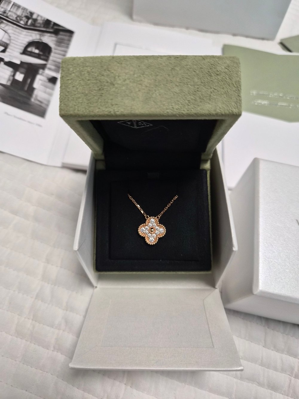 반클리프 아펠 알함브라 그레이 마더오브펄 네크리스빈티지, 로즈/핑크골드, 마더오브펄