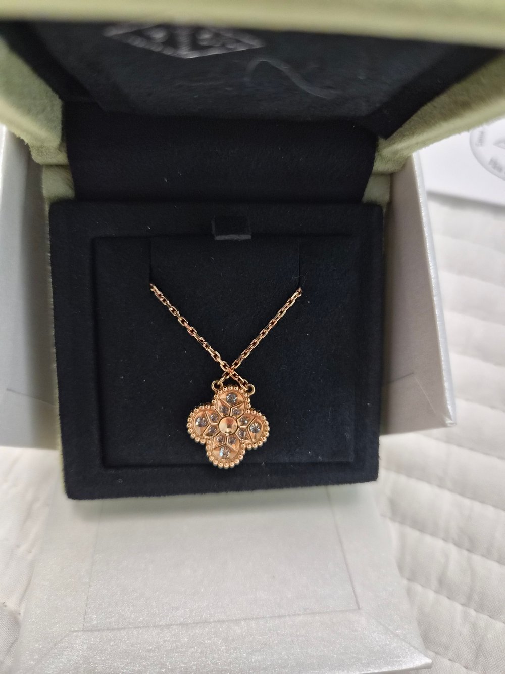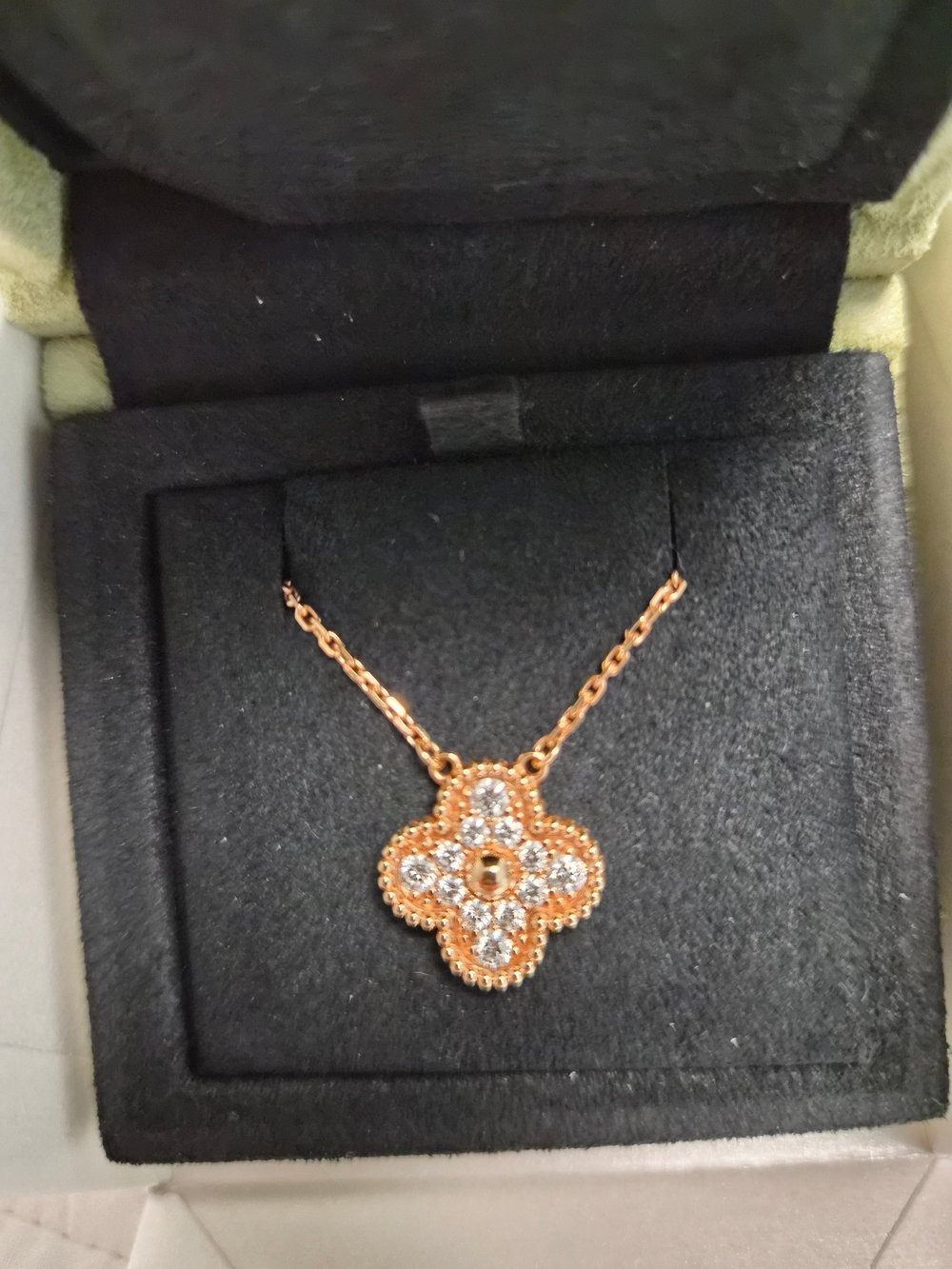 반클리프 아펠 알함브라 다이아 네크리스빈티지, 로즈/핑크골드, 풀 파베, 빈티지사이즈 42cm
