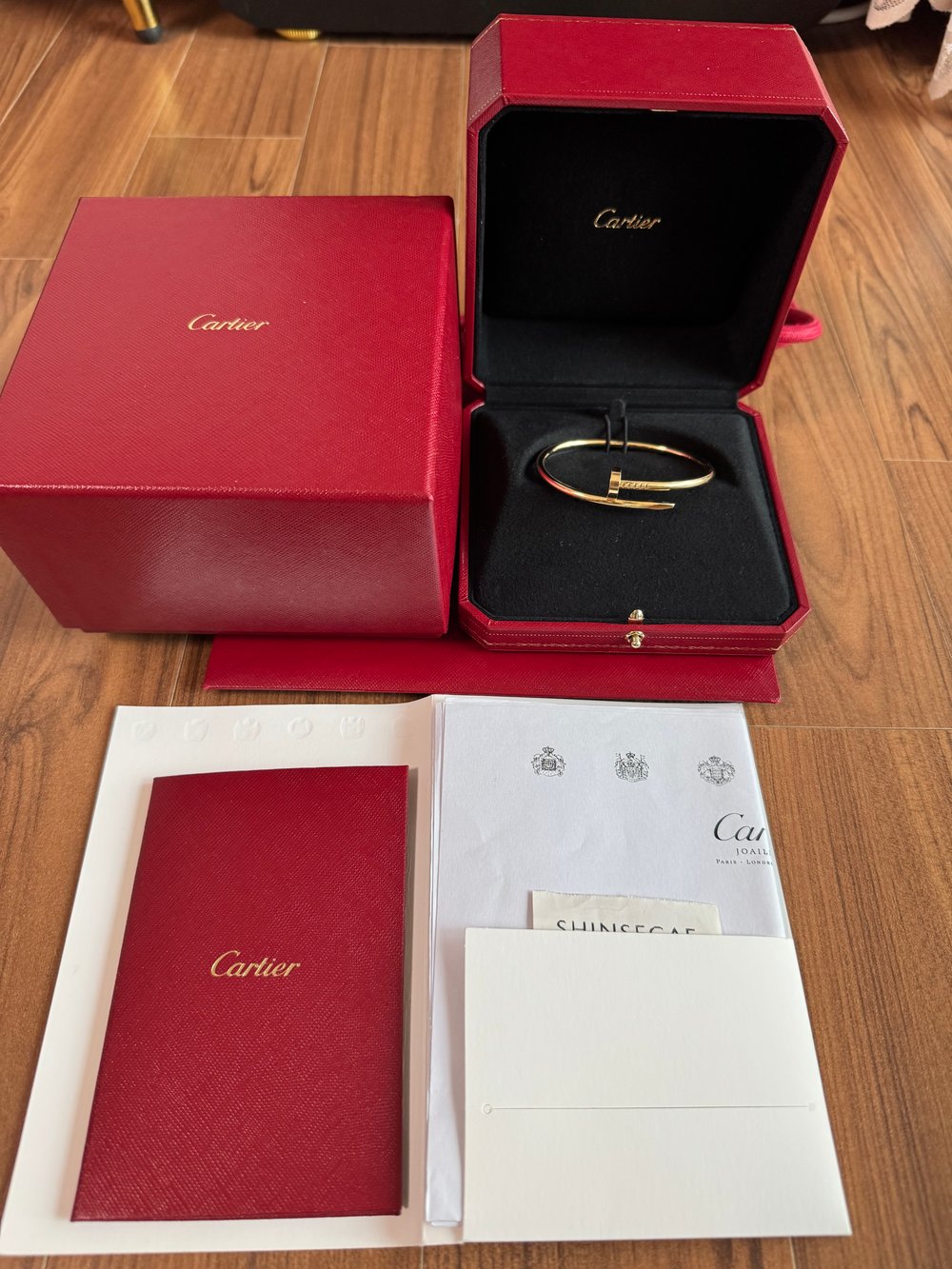택배 받자마자 잘 들어있나 흔들어보고ㅋㅋ 바로 언박싱했습니다. 페이브릴 정책상 한국명품감정원에서 감정 후 바로 보내나 봅니다. 택배박스가 럭셔리함과는 거리가 있네요.ㅎ 페이브릴에서 직접 배송했다면 더 근사했을지도 모르겠네요. 혹시나 물건이 바꼈으면 어쩌나 등, 여러가지 기우가 있었지만 박스를 열자마자 모든 근심이 날아가버렸네요.ㅎ 아 이거다 하면서요 ㅎ 판매자분 설명과 다른 부분은 없었습니다. 제 무지에 의한 의구심은 동봉되어있는 까르띠에 직원분 명함으로 전화하여 바로 해결~ 착장하니 이건 원래 내 살에 일부인 것 처럼 찰싹 붙었네요. 영롱합니다. 구매 전 당근으로 많이 알아봤었는데 오롯이 모든 책임을 구매자가 져야하는게 부담이 되어 페이브릴을 믿고 구매한게 신의 한수. 게다가 페이브릴의 검수비용(?) 무료이벤트로 더욱 더 기분 좋았습니다. 앞으로 세 번 더 이용할께요 ㅎㅎ 다들 얼른 지르고 봅시다! ㅎ