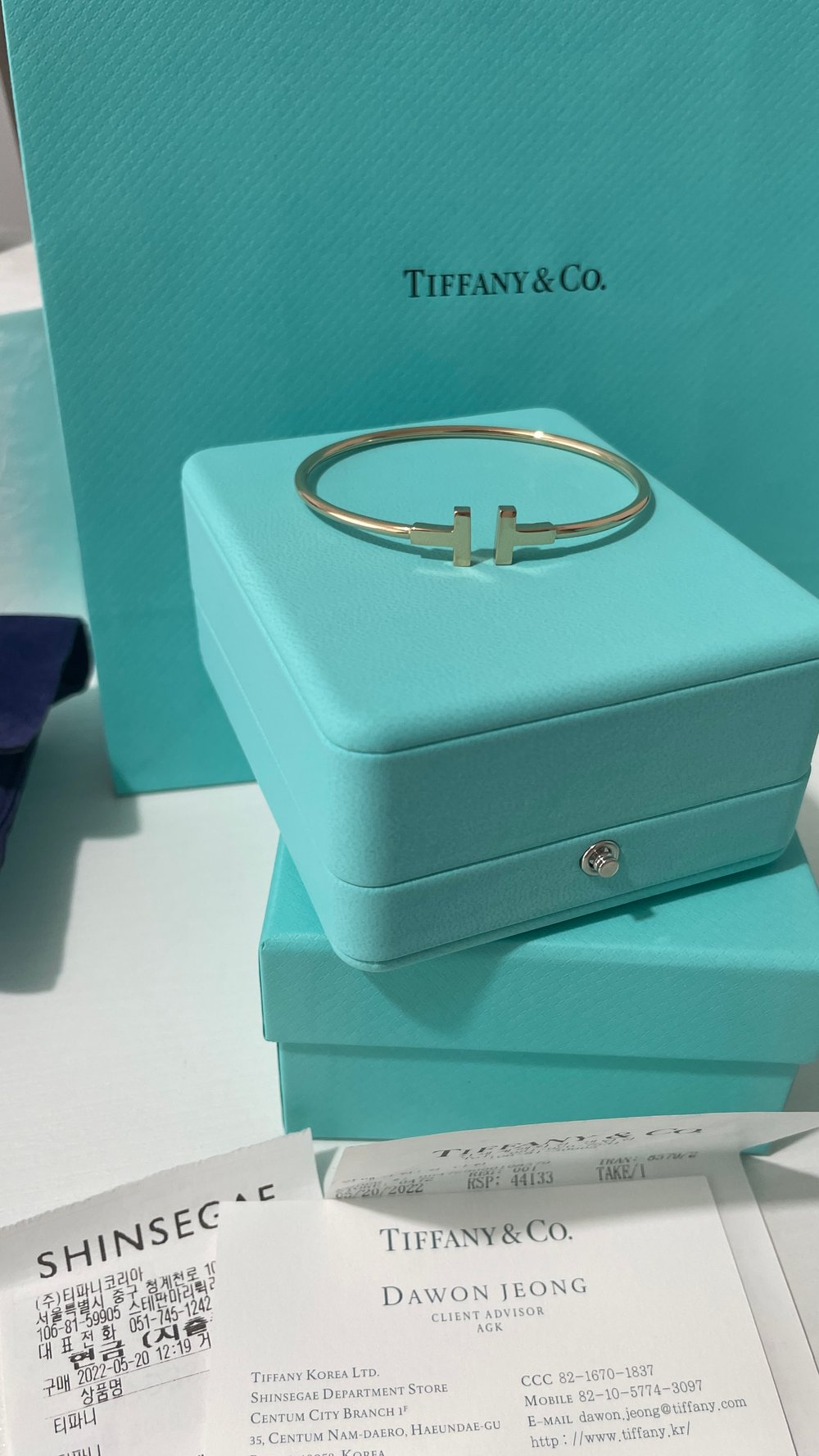 다른 티파니 팔찌와 레이어드 해서 사용했기 때문에 스크래치가 살짝살짝 있는데 폴리싱 하면 깨끗해질 것 같아요