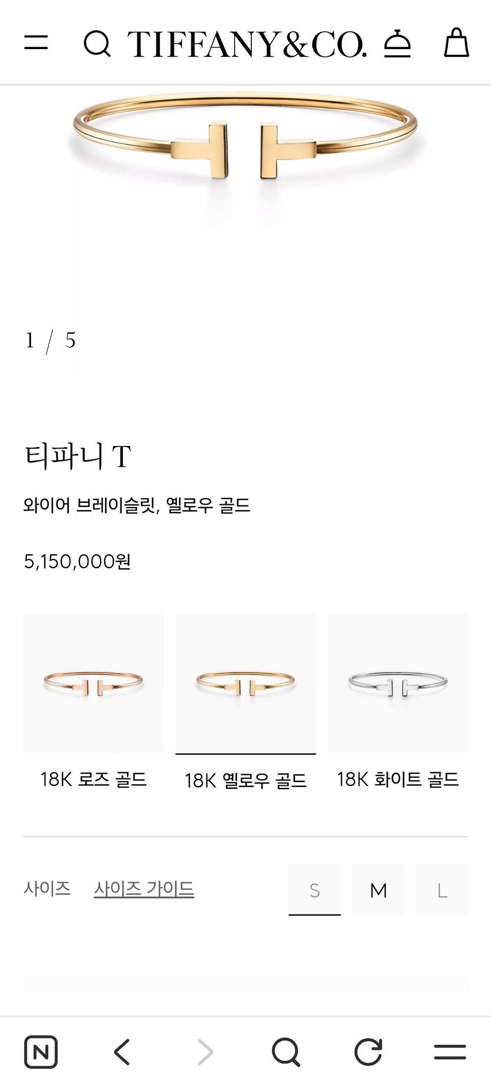 티파니 T 와이어 뱅글 팔찌 사이즈 S, M 실착 후기
