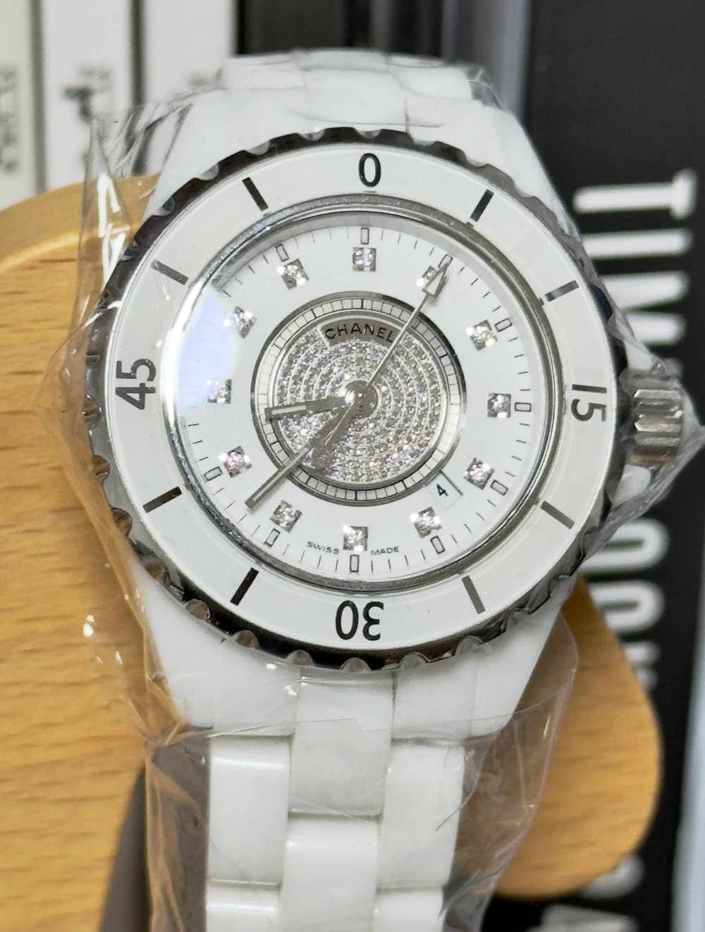 샤넬 J12 (29mm) 워치스틸, 마더오브펄, 풀 파베, 29mm