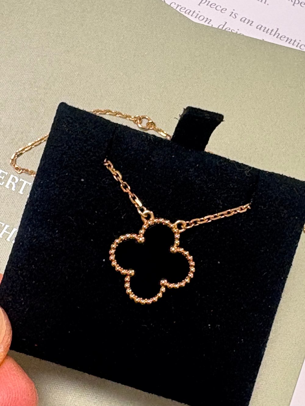 반클리프 아펠 알함브라 10모티브 네크리스빈티지, 옐로우골드, 오닉스, 기본사이즈