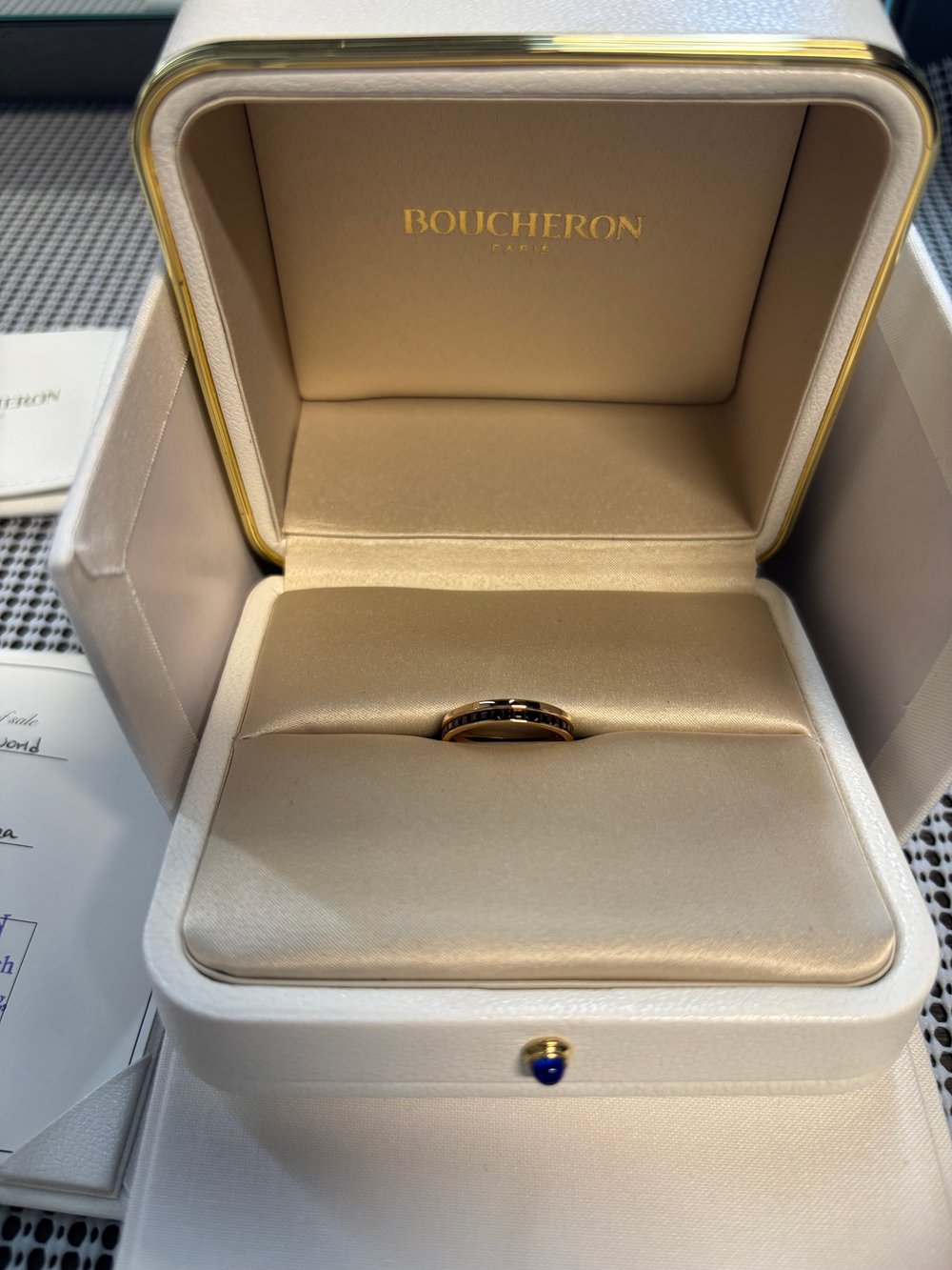 스몰 · 라지 모델까지 한 번에 끝내는 사이즈 가이드 레이어드된 밴드와 볼륨감 덕분에 존재감이 큰 콰트로 링은 웨딩 밴드로 데일리 착용할 때 특히 사이즈 선택이 중요해요. 모델에 따라 같은 호수라도 착용감이 달라지기 때문에 기본 웨딩 링, 스몰, 라지 모델을 나눠서 보는 것이 좋습니다. [사이즈 선택 가이드] ❶ 기본 콰트로 웨딩 링 안쪽 마감이 부드럽고, 손가락을 자연스럽게 감싸는 곡선 형태라 ✔️ 평소에 착용하는 정 사이즈로 편안하게 착용 가능해요. 👉 예: 평소 51호 착용 → 51호 추천 ❷ 콰트로 클래식 스몰 링 여러 코드가 한 번에 레이어드된 구조라 실제 착용감이평소 반지보다 살짝 타이트하게 느껴질 수 있습니다. ✔️ 평소 링 사이즈보다 한 사이즈 크게 선택을 추천해요. 👉 예: 평소 51호 착용 → 스몰 링 52호 추천 ❸ 콰트로 클래식 라지 링 밴드 폭이 가장 넓고 손가락을 감싸는 면적이 크기 때문에 정사이즈로 맞추면 끼우고 뺄 때 답답할 수 있어요. 손가락 옆면과 아랫부분까지 넓게 닿으면서 움직임이 제한되고, 실제 호수보다 더 작게 느껴지는 편입니다. ✔️ 평소 링 사이즈보다 두 사이즈 크게 선택을 권장해요. 👉 예: 평소 51호 착용 → 라지 링 53호 추천 [왜 스몰은 한 사이즈, 라지는 두 사이즈 업이 필요할까] - 링의 폭과 손가락이 닿는 면적 때문인데요. 링 폭이 두꺼워질수록 손가락과 맞닿는 면이 넓어지고 같은 호수라도 더 타이트하게 느껴지게 됩니다. - 콰트로처럼 폭이 넓은 링은 손가락을 둥글게 감싸며 반듯하게 고정되는 형태라, 마디를 통과할 때나 손을 쥐었다 폈다 할 때 더 끼는 느낌이 강해져요. - 여기에 더해, 계절, 온도, 개인별 붓기 차이 때문에 볼륨감이 큰 스몰, 라지는 여유있는 사이즈 선택하는게 오래 착용하해도 편안하고, 손가락 라인도 더 예쁘게 정리되어 보여요. 💡페이브릴 Tip) 콰트로 스몰 모델을 보고 있다면 →평소 호수보다 한 사이즈 크게 콰트로 라지 모델을 보고 있다면 →평소 호수보다 두 사이즈 크게 ________________________________________________ 💭FAQ Q. 콰트로 링은 사이즈 조정이 가능한가요? A. 밴드 전체에 패턴이 반복되는 구조라 사이즈 조절이 불가해요. 사이즈 수선이 어려운 디자인이기 때문에, 구매 시 계절과 온도, 개인의 붓기 정도를 함께 고려해 호수를 신중하게 선택하는 것이 중요해요. Q. 웨딩링으로 가장 인기있는 콰트로 링은 무엇인가요? A. 부쉐론 클래식 콰트로링 4단 다이아 모델이 가장 인기 있어요. - 일반적으로 여성분은 다이아가 세팅된 클래식 콰트로 링, - 남성분은 다이아가 없는 클래식 콰트로 링 조합으로 많이 선택하세요. Q. 콰트로 색상은 어떤 컬러가 인기가 많나요? A. 콰트로 컬렉션은 다양한 컬러와 소재를 조합한 디자인이 특징입니다. - 브라운 PVD(클래식) : 캐주얼 스타일과 포멀한 룩 모두에게 잘 어울려 활용도가 높아요. - 화이트 세라믹(화이트 에디션) : 밝고 여성스러운 분위기를 선호하시는 분들께 인기입니다. - 블랙 PVD(블랙 에디션) : 강렬하고 모던한 무드를 주어 존재감 있는 포인트 링으로 좋습니다. Q. 콰트로 링 착용팁이 있을까요? A. 기본 웨딩 밴드와 가드링을 레이어링하면, 콰트로 스몰 모델을 보다 부담 없이 연출할 수 있어요 - 클루 드 파리, 그로그랭, 다이아 가드링 디자인을 가드링으로 많이 찾으세요. 가드 링만 단독으로 착용해도 캐주얼한 느낌을 줄 수 있고, 상황에 따라 다른 가드 링을 함께 레이어링하면 두께감 있는 스몰 모델을 착용한 듯한 느낌으로 연출할 수 있습니다.