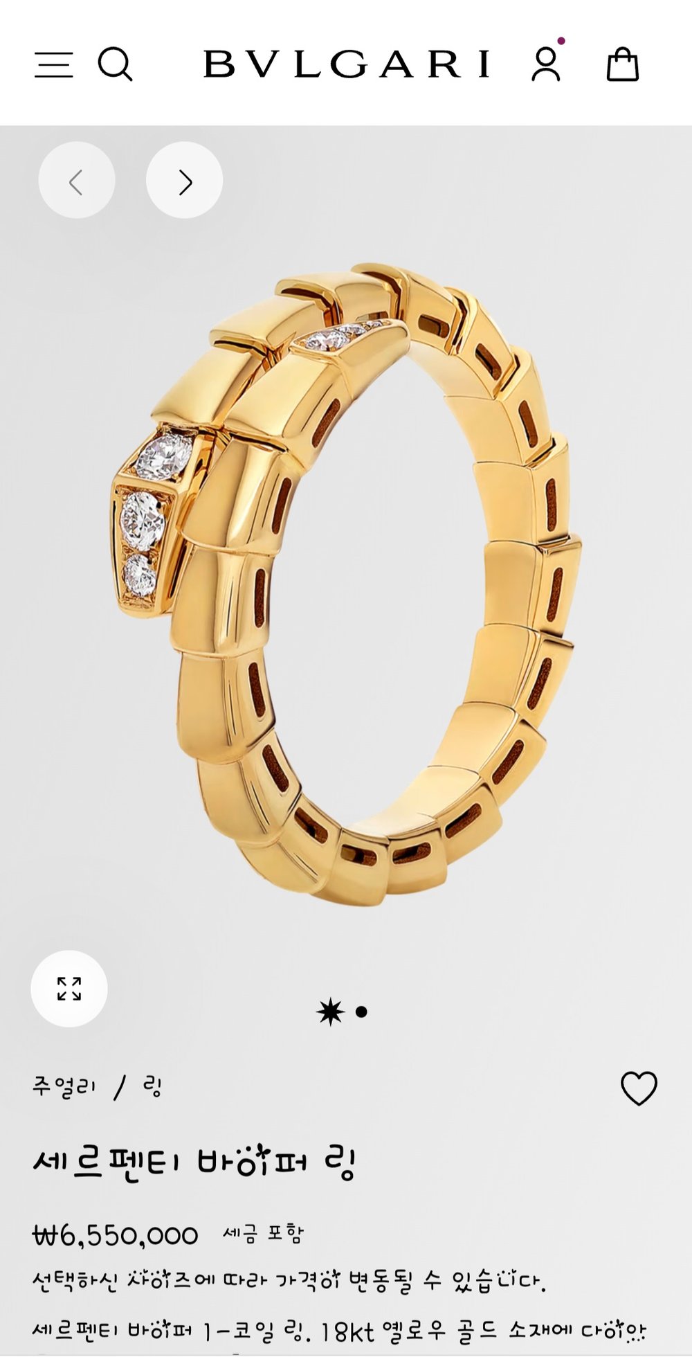 불가리 세르펜티 바이퍼 링 - 반지