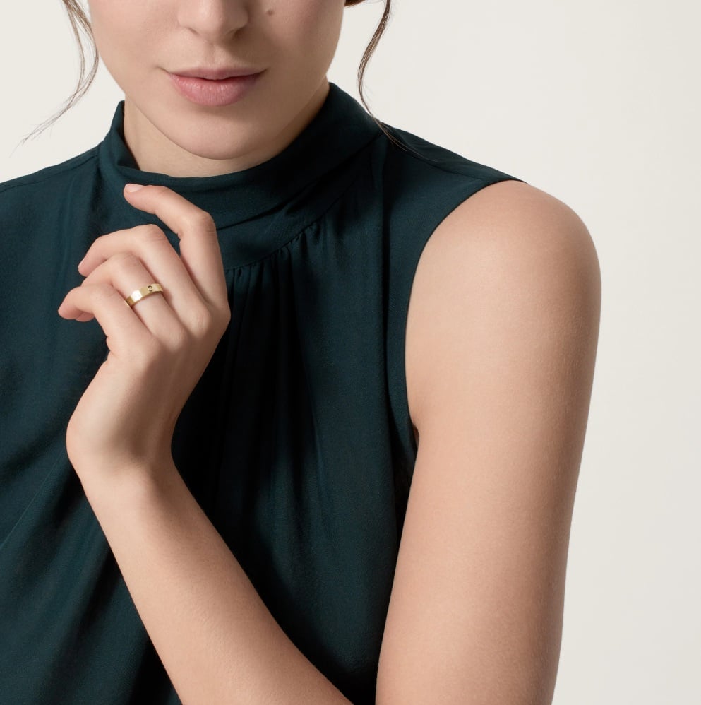 스테디템인 까르띠에 저스트 앵 끌루 링 사이즈 팁 알려드릴게요🙌 저스트 앵 끌루(Juste un Clou) 컬렉션은 못을 굽혀 만든 형태가 특징이라 선명하고 시크한 존재감을 주는 라인입니다. 심플한 룩에도 단독으로 착용했을 때 가장 또렷한 느낌을 주어 스테디셀러로 꾸준히 사랑받고 있어요. [사이즈 선택 가이드] ❶ 한 사이즈 🆙 추천 저스트 앵 끌루 링은 못 머리와 굴곡이 있는 디자인 특성상 정사이즈로 착용하면 헤드 부분이 손가락을 눌러 답답할 수 있어요.