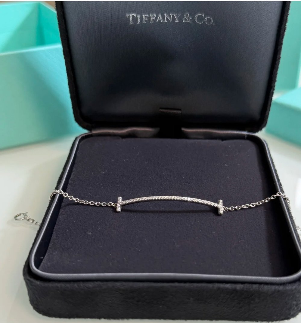 티파니 T 스마일 브레이슬릿스몰, 화이트골드, 풀 파베, M
