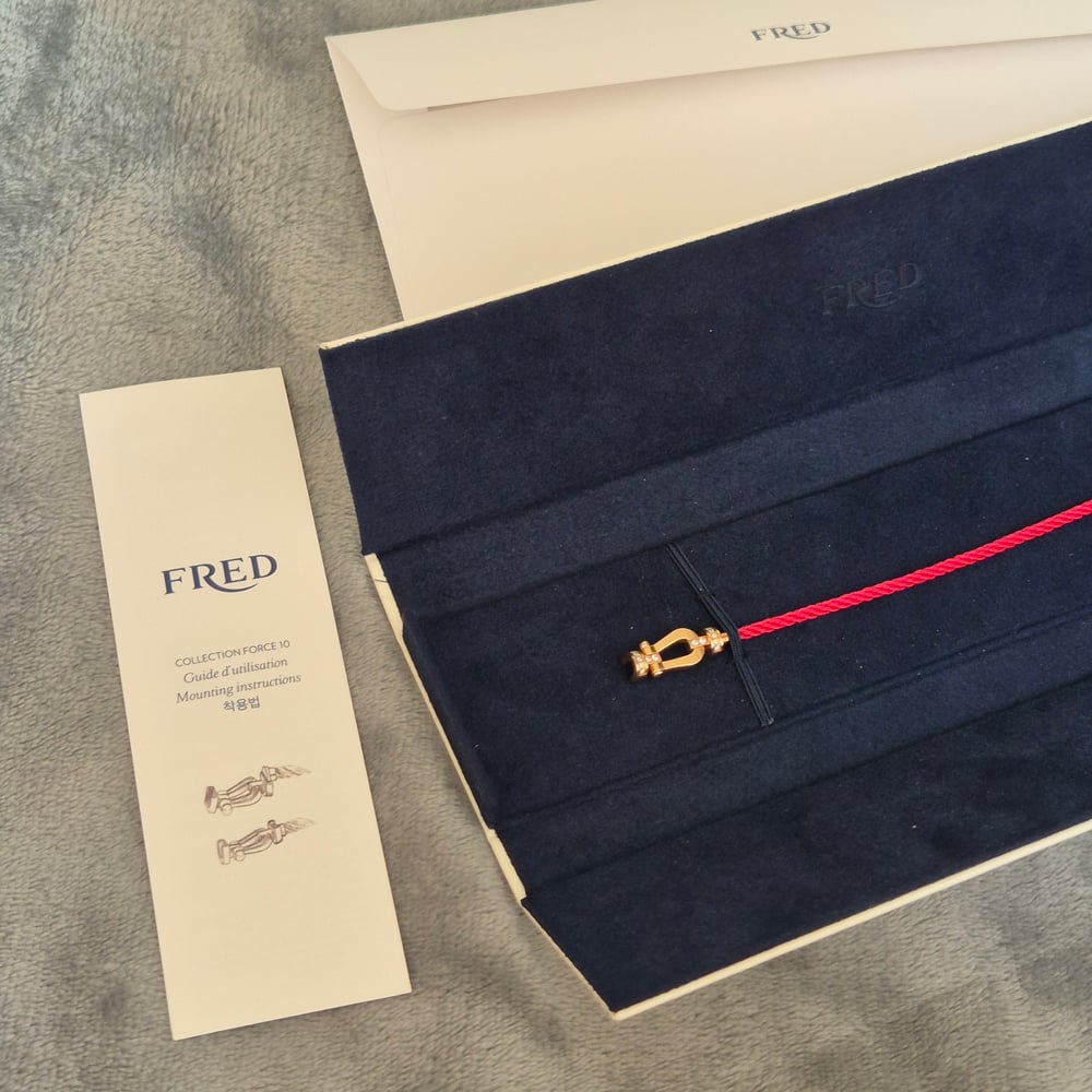프레드 보증서는 제품 카테고리(팔찌, 목걸이, 귀걸이)에 따라 보관 위치와 형태가 조금씩 달라요. 처음 케이스를 열었을 때 “어? 보증서가 없는데?” 싶으셨다면, 아마도 제품마다 다른 구성 때문일지도 몰라요 😊 ⚓ 팔찌 (미디엄·라지 모델) 미디엄 사이즈 이상 모델부터 긴 종이 형태로 들어 있어요. 표지에는 ‘착용법’ 이라고 적혀 있어서 처음엔 사용설명서로 착각하기 쉽지만, 펼쳐보면 안쪽에 보증서 정보가 함께 기재돼 있답니다. [보증서에서 확인할 수 있는 정보] - 제품 번호: 버클과 케이블 각각의 제품 번호가 적혀 있어요. 케이블 제품 번호 뒤에는 #12처럼 착용 사이즈가 함께 표시돼요. (예: 1B1234, 2B1234 #12) - 구매 일자 : 보증 기간의 기준이 되는 날짜로, [년. 월. 일] 형태로 표기돼요. (예: 2025. 09. 24) - 시리얼 넘버 : 같은 모델 중에서도 ‘내 주얼리 한 점’을 구별해주는 고유 번호예요. - 매장 이름 : 구매하신 공식 매장의 이름이 기재돼요. *현재는 긴 종이 형태가 일반적이지만, 예전 구매 제품은 '정사각형' 형태로 작은 파우치 안에 들어 있기도 해요. 💎 목걸이 · 귀걸이 · 팔찌(스몰 모델) 이 제품들은 박스 구조가 조금 달라요. 보증서는 제품이 담긴 박스 맨 아래쪽, 서랍형 공간에 보관되어 있답니다. 작은 끈을 살짝 당기면, 안쪽에 정사각형 모양의 보증서를 확인하실 수 있어요. 💡페이브릴 Tip. 프레드 보증서는 케이스 안에 함께 보관되는 형태라 분실 우려가 적은 편이에요. 내 주얼리에 대한 정보를 담고 있는 유일한 공식 문서로, 추후 재판매나 감정 시 제품의 가치를 높여주는 중요한 증빙 자료로 활용될 수 있어요.