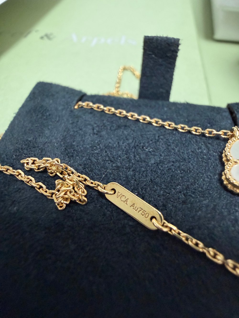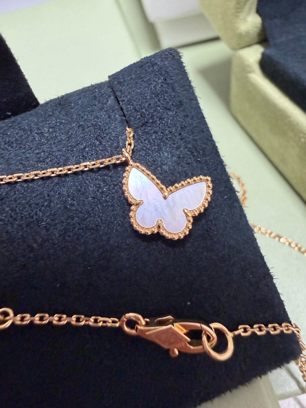 꼼꼼하게 정품 확인하고 배송해줘서 너무 좋았습니다! 스위트라 자개가 작은편이긴 하지만 존재감이 확실합니다:) 조그만한 포인트 목걸이를 좋아하는 편이라 마음에 들어요 합리적인 가격으로 위시템 장착했어요 주얼리는 사랑입니다🫶