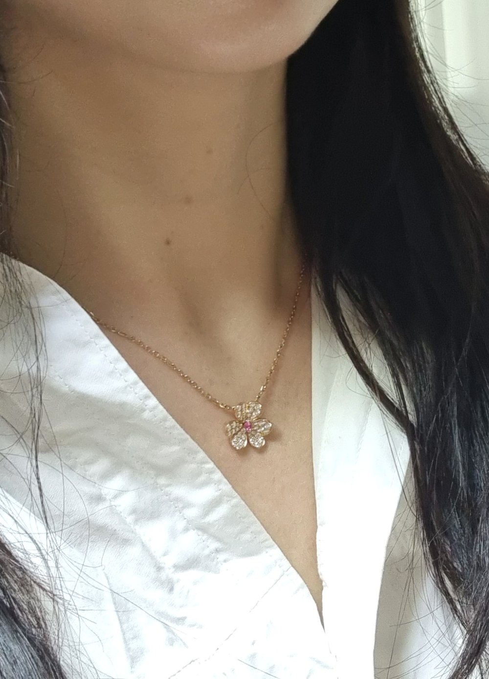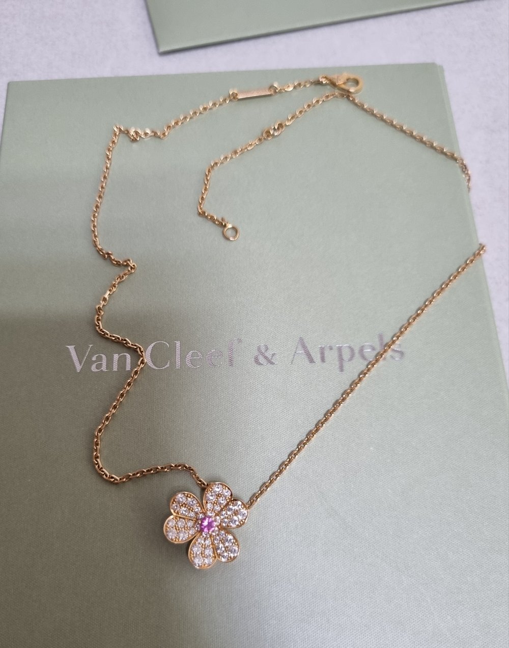 반클리프 아펠 프리볼 네크리스스몰, 로즈/핑크골드, 세미 파베, 38-42cm