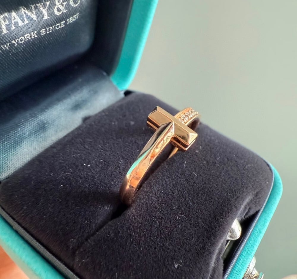 티파니 T 1 링로즈/핑크골드, 세미 파베, 7.5호, 한국사이즈로16호(17.7둘레)