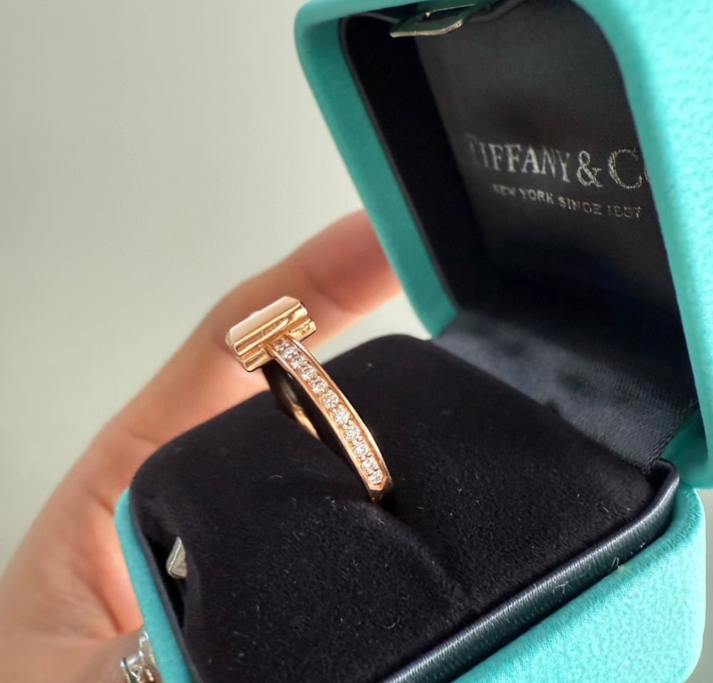 티파니 T 와이어 링로즈/핑크골드, 마더오브펄, 세미 파베, 티파니 5호