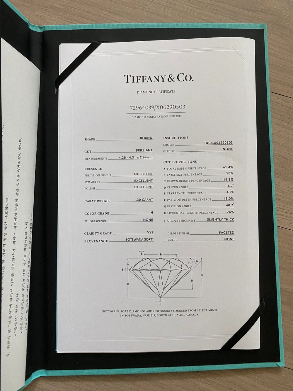 구매영수증, 기프트영수증, 보증서, 다이아몬드 품질보증서 등 구매당시 받은 서류 모두 보관 중입니다. 동봉된 보증서 지참하면 기한 없이 티파니 전국 매장 방문해서 반지 사이즈 조절 가능합니다 (총 3회까지 리사이징 가능한 걸로 알고 있음)