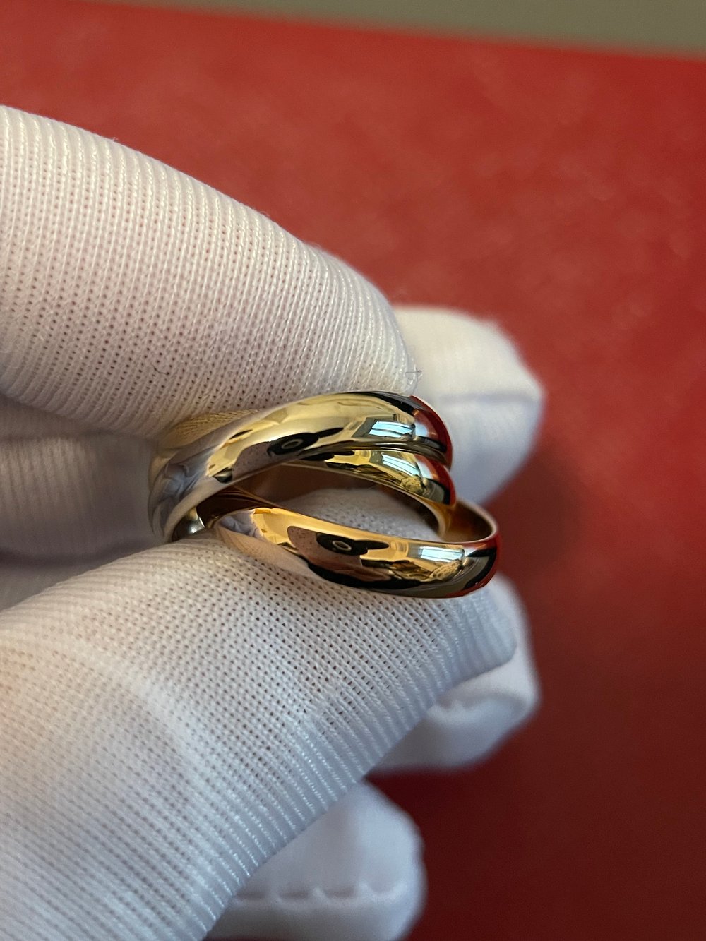인기 많은 까르띠에 트리니티 링 사이즈 팁 알려드릴게요🙌 까르띠에 트리니티 링(Trinity Cartier)은 옐로우골드, 화이트골드, 핑크골드 세 가지 밴드가 서로 맞물려 있는 디자인으로 사랑, 우정, 신의를 상징하는 클래식 라인입니다. 출시된 지 100년이 넘은 만큼, 세대를 이어 사랑받는 대표 컬렉션이에요. 3개의 링이 서로 맞물려 돌아가는 디자인으로 일반적인 솔리드 링과는 착용감이 다르고, 그만큼 사이즈 문의도 많은 편이에요. 그래서 가이드를 준비해봤습니다. [트리니티 링 사이즈 선택 가이드] ❶ 정사이즈 혹은 한 사이즈 업 트리니티 링은 롤링 디자인이라 기본적으로 평소 사이즈와 동일한 정사이즈를 가장 먼저 추천해요. 다만, 손가락에 살이 있는 편이라면 살이 볼록하게 튀어나와 보일 수 있어서 한 사이즈 업도 많이 선택하는 편이에요. 예: 평소 49호 착용 👉 트리니티 링은 49호 추천 👉 손가락에 살이 있는 편이다 → 트리니티 링 50호 추천 ❷ 손가락 컨디션 고려 손가락 굵기는 계절과 체온, 오전 붓기에 따라 달리질 수 있어요. 손가락 개인 편차에 따라 사이즈를 결정하면 좋아요. - 여름보다는 겨울에 헐겁게 느껴질 수 있어요 - 오전보다는 오후에 헐겁게 느껴질 수 있어요 ❸ 사이즈 조정 ± 1 사이즈 가능 트리니티 링은 한 사이즈씩 내외로 리사이징이 가능해요. 💡 Tip) 손가락에 살이 튀어나와 보이지 않게 예쁜 핏감으로 착용하고 싶다면, 너무 딱 맞는 호수보다는 한 사이즈 업도 좋은 선택이에요. 손가락에서 쉽게 빠지지 않을 정도의 여유로 맞춘다면 일상생활에서 편하게 착용할 수 있습니다. 실제 착용사진과 함께 내 손가락 컨디션을 떠올려보며, 트리니티 링 사이즈 선택에 참고해 보세요.