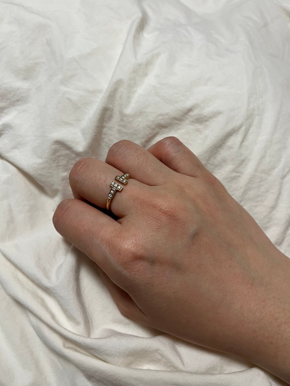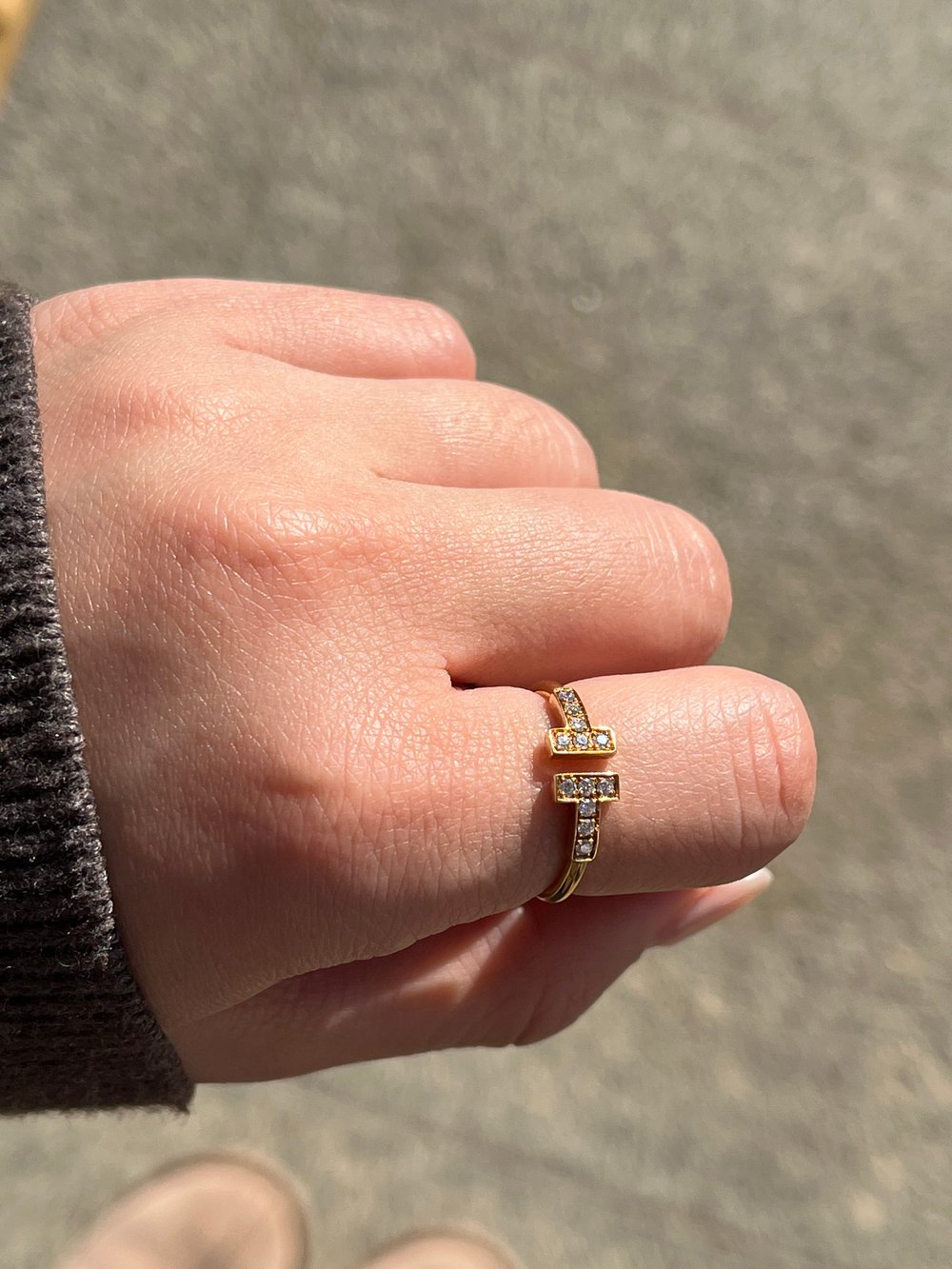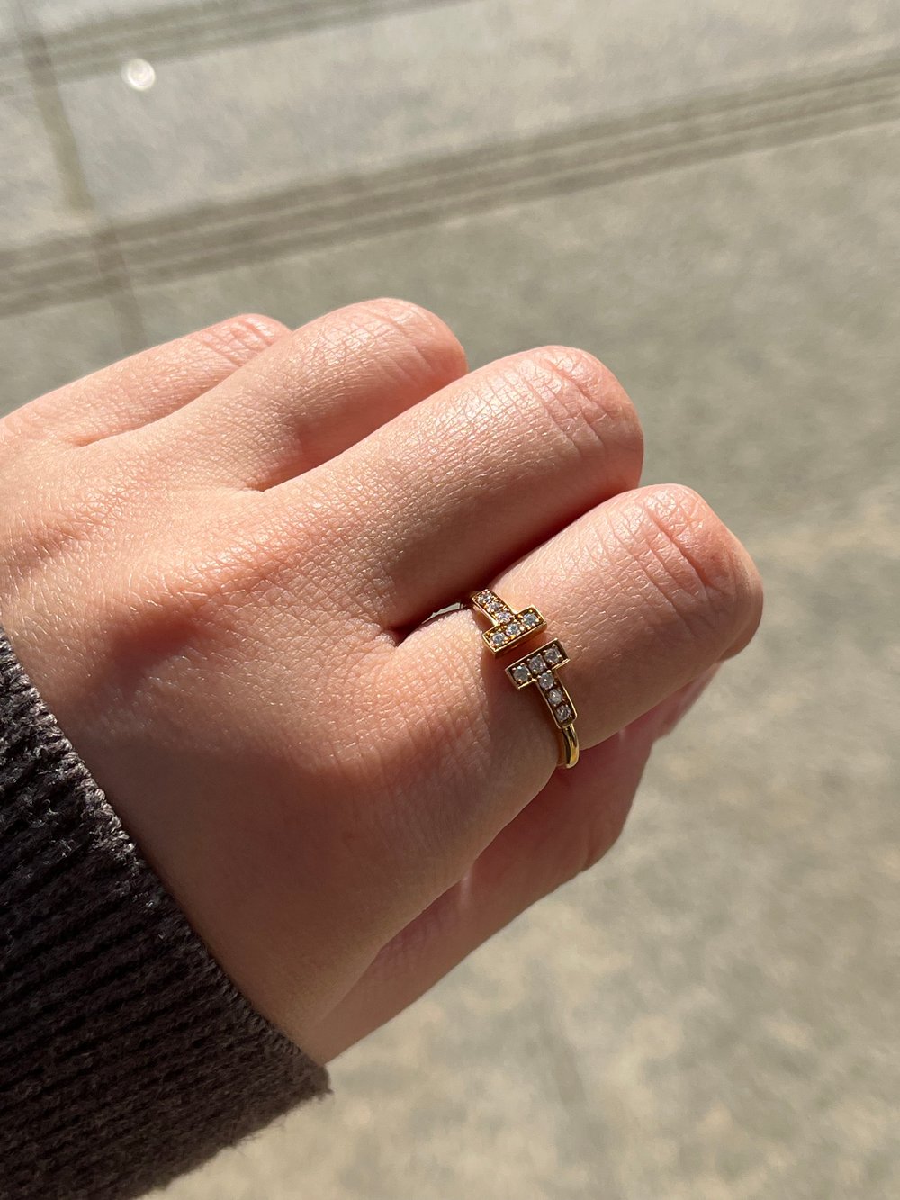 티파니 T 와이어 링옐로우골드, 세미 파베, 7.5