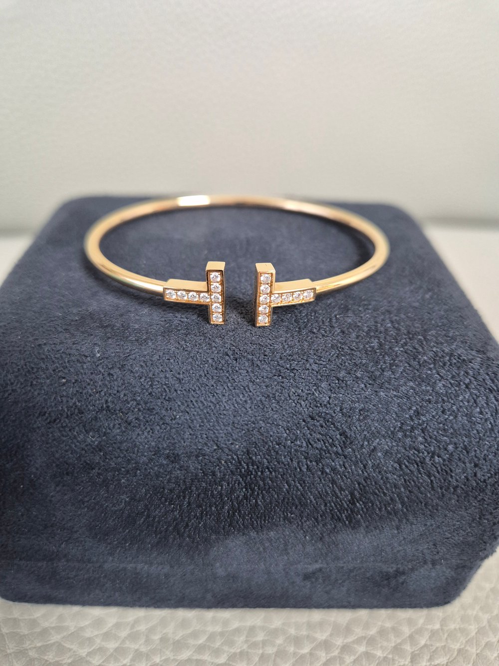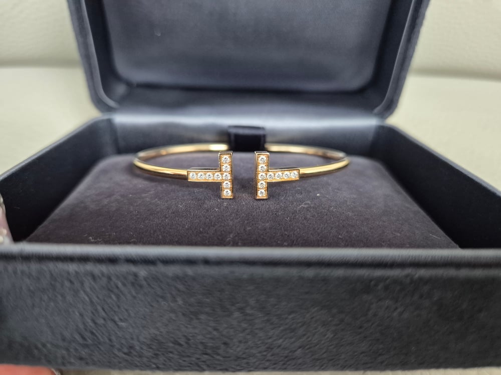 티파니 T 와이어 브레이슬릿로즈/핑크골드, 풀 파베, S