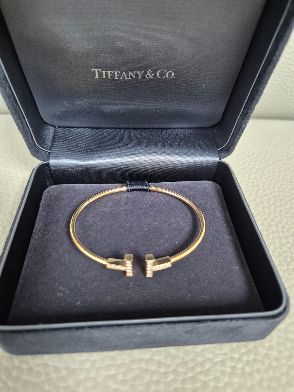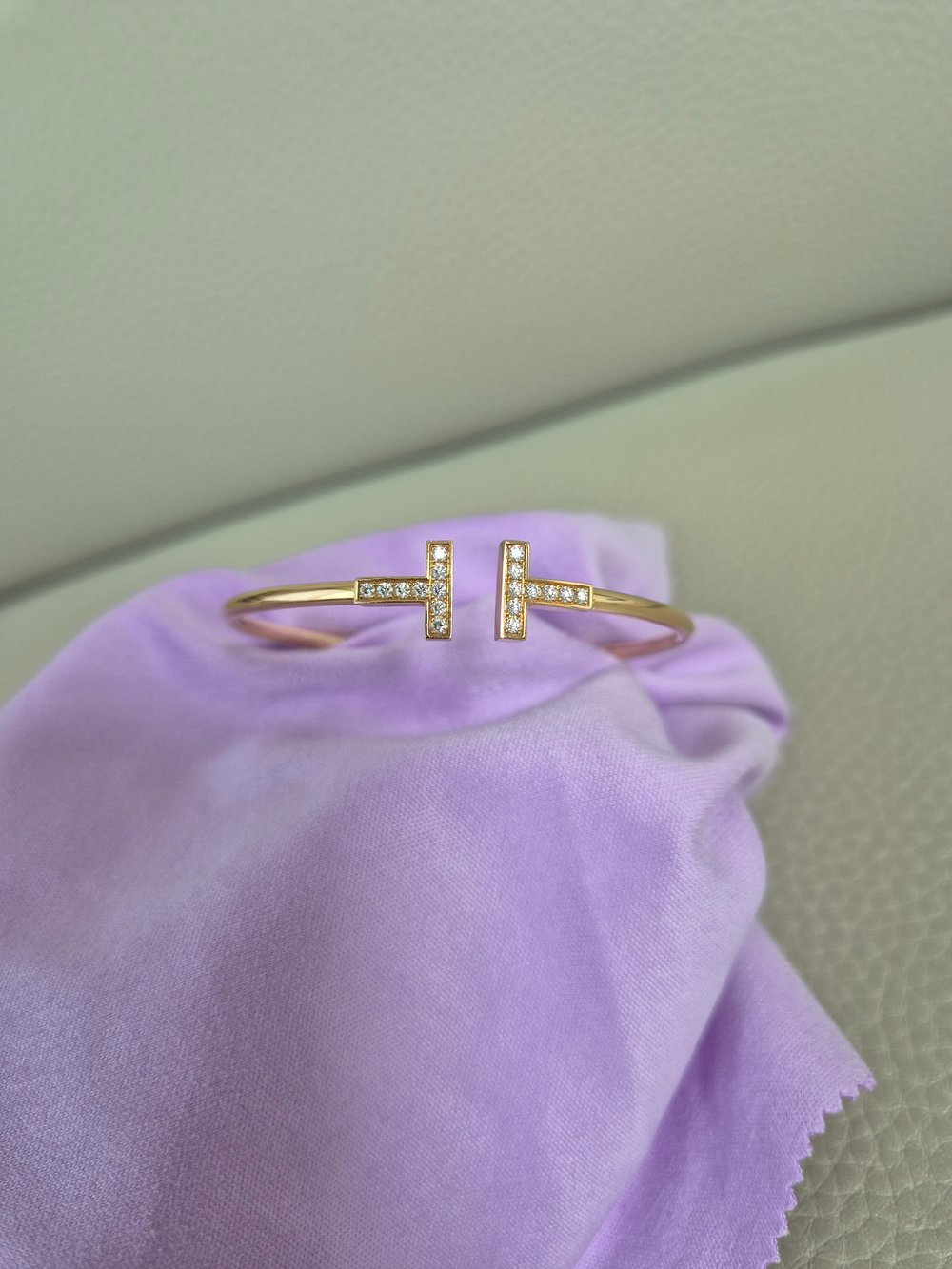 티파니 T 와이어 브레이슬릿옐로우골드, 풀 파베, 17cm