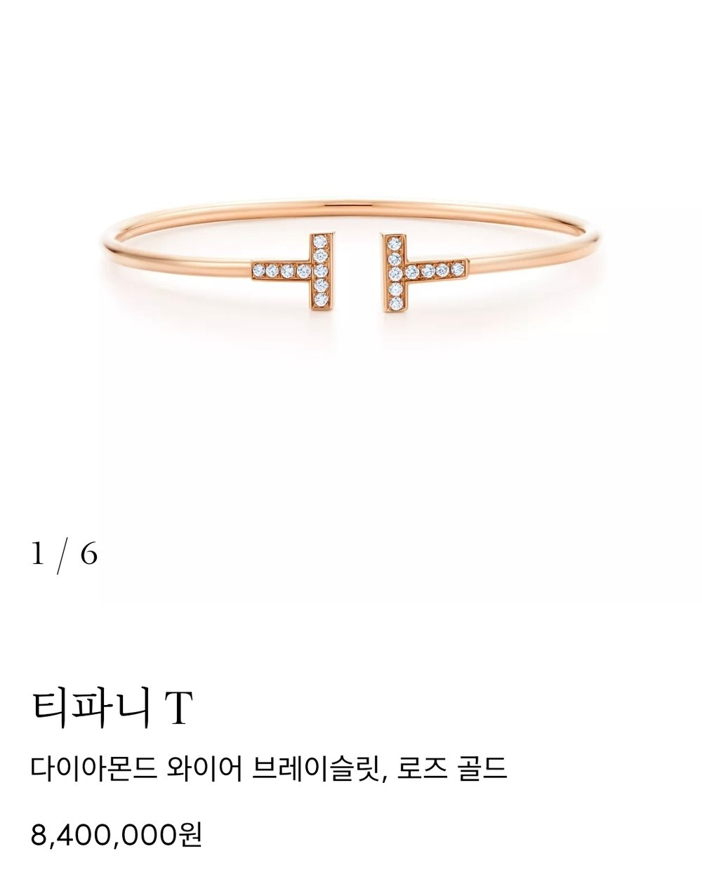 티파니 T 1 네로우 힌지드 뱅글 브레이슬릿로즈/핑크골드, S 사이즈