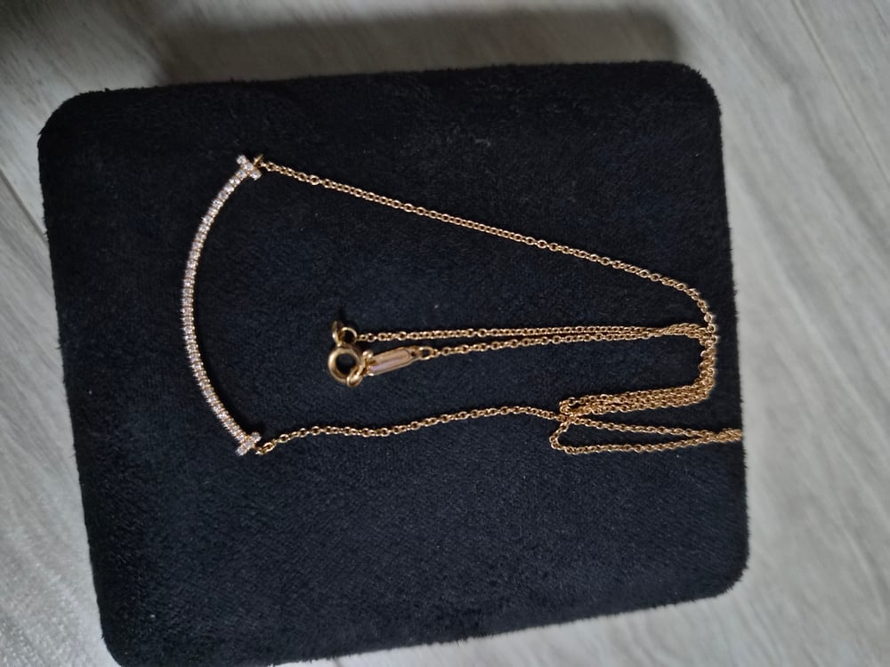 티파니 T 스마일 네크리스스몰, 옐로우골드, 풀 파베, 42