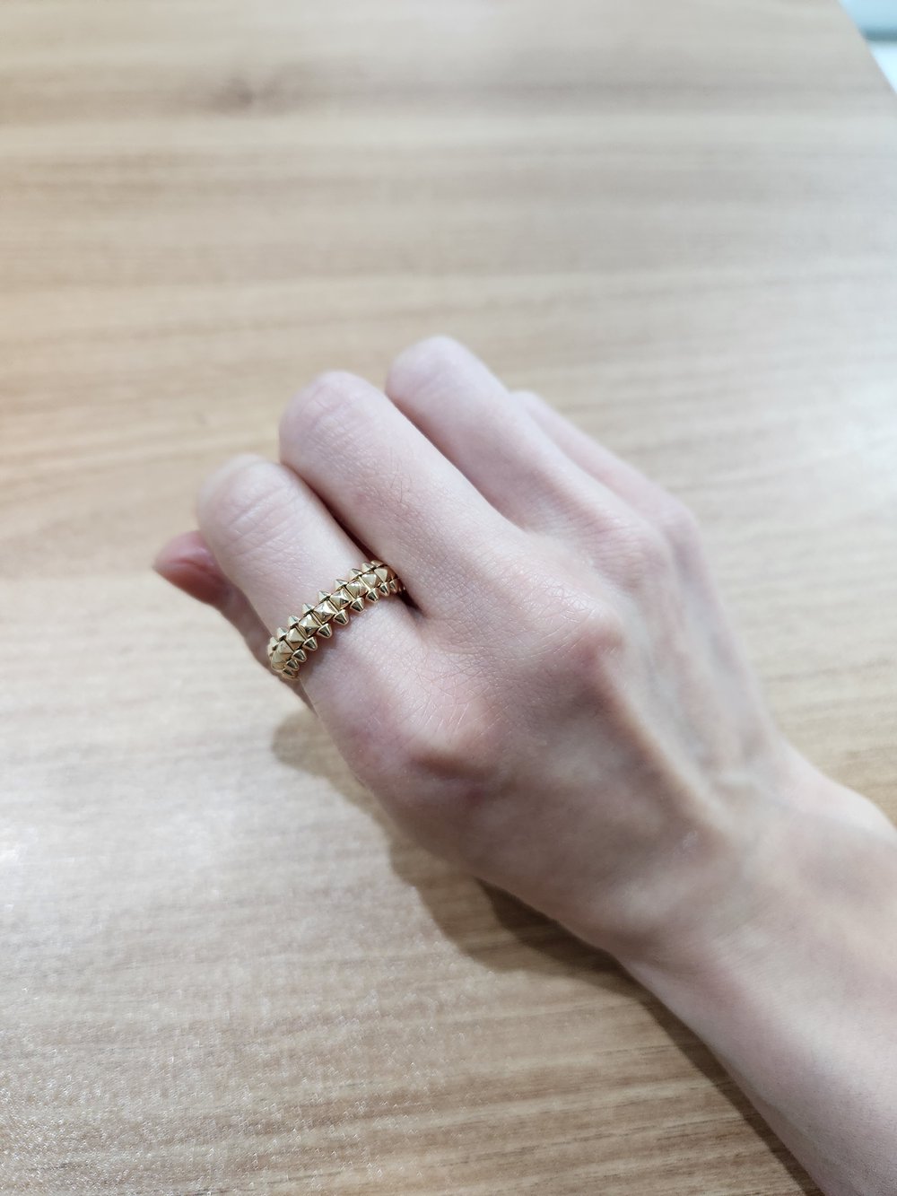 스테디템인 까르띠에 저스트 앵 끌루 링 사이즈 팁 알려드릴게요🙌 저스트 앵 끌루(Juste un Clou) 컬렉션은 못을 굽혀 만든 형태가 특징이라 선명하고 시크한 존재감을 주는 라인입니다. 심플한 룩에도 단독으로 착용했을 때 가장 또렷한 느낌을 주어 스테디셀러로 꾸준히 사랑받고 있어요. [사이즈 선택 가이드] ❶ 한 사이즈 🆙 추천 저스트 앵 끌루 링은 못 머리와 굴곡이 있는 디자인 특성상 정사이즈로 착용하면 헤드 부분이 손가락을 눌러 답답할 수 있어요.