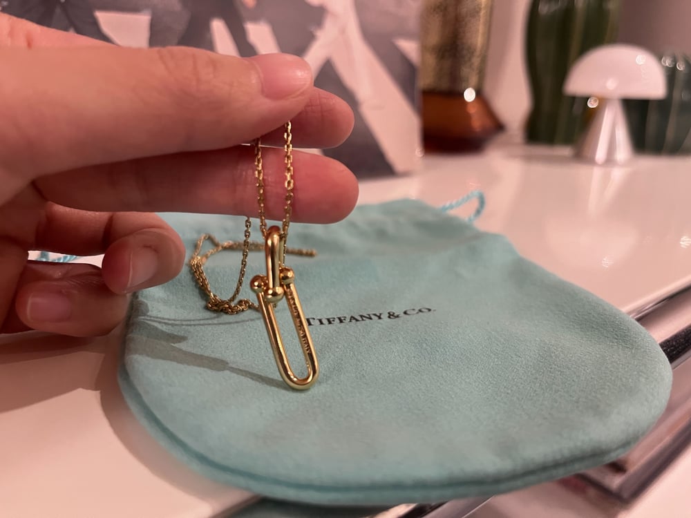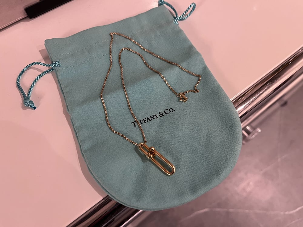 티파니 하드웨어 더블 링크 네크리스스몰, 옐로우골드, 40.6cm~45.7cm