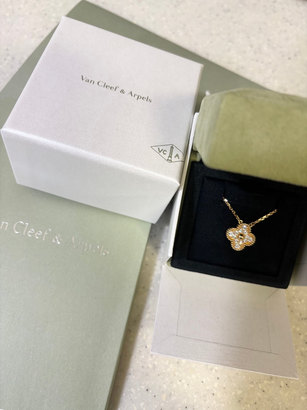 반클리프 아펠 알함브라 다이아 네크리스빈티지, 옐로우골드, 풀 파베