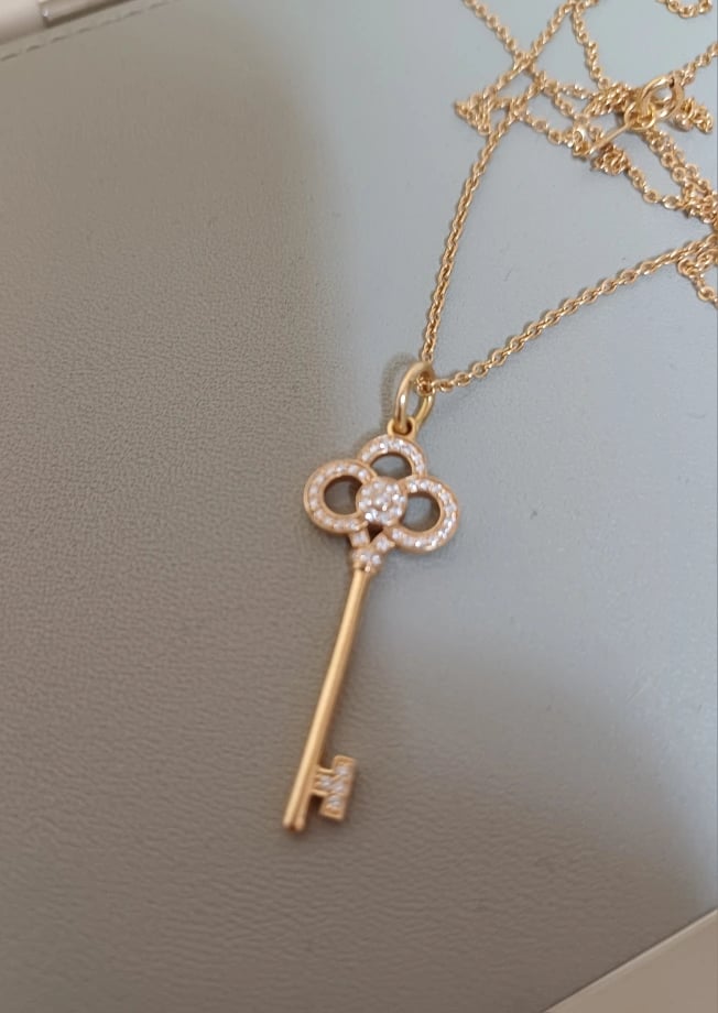 티파니 키 페탈(only 펜던트) 네크리스미디엄, 옐로우골드, 풀 파베, 펜던트 5cm