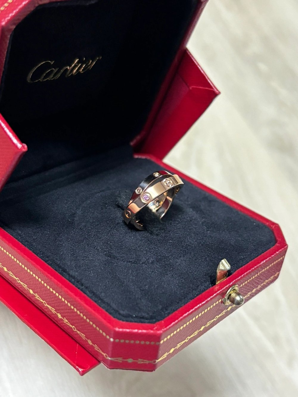 까르띠에 러브 3p 링클래식, 로즈/핑크골드, 세미 파베, 57호 (17호)