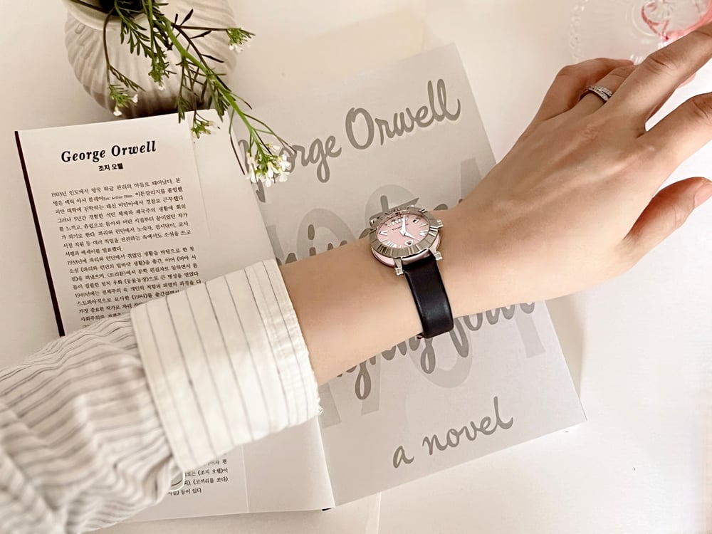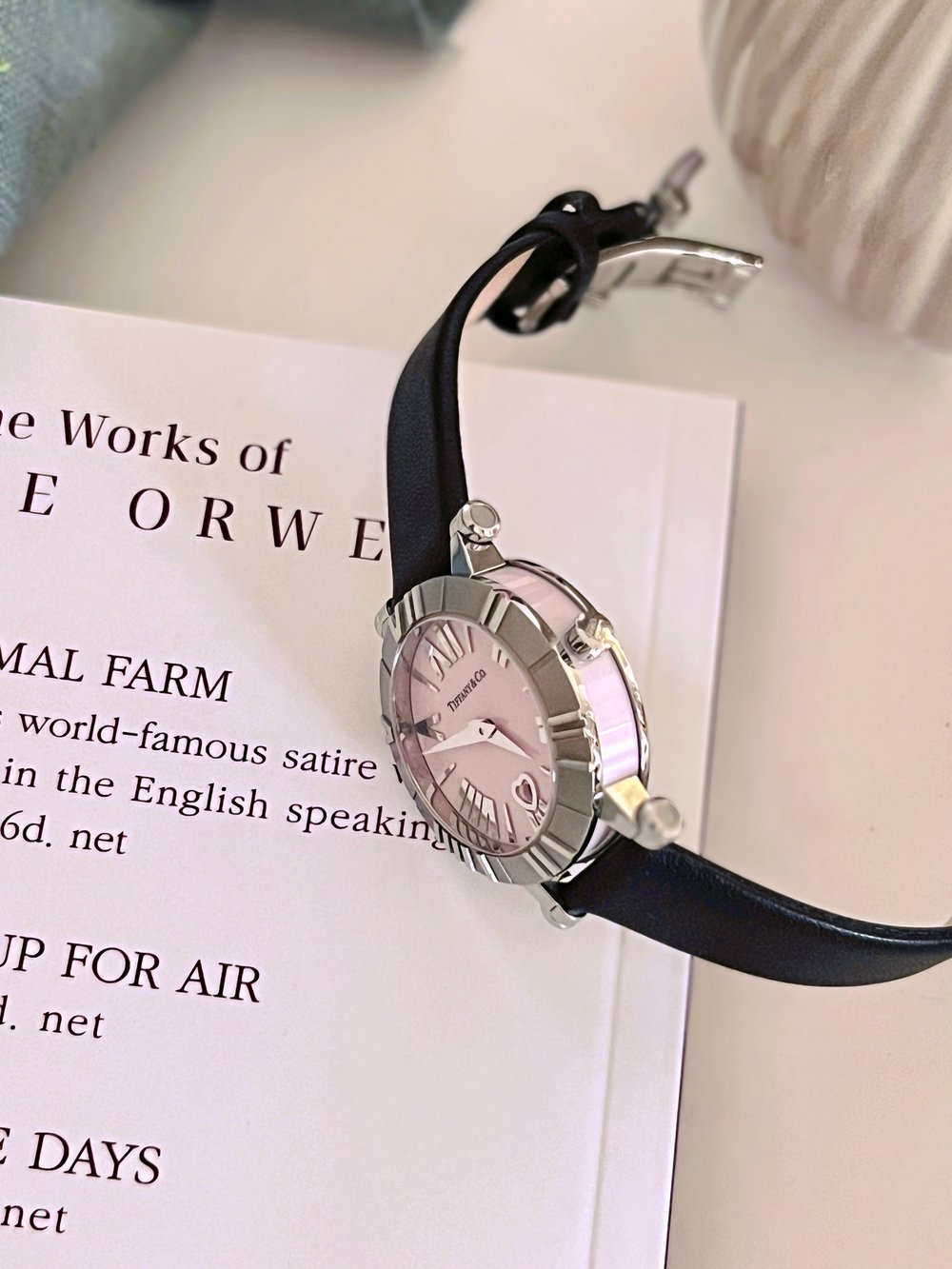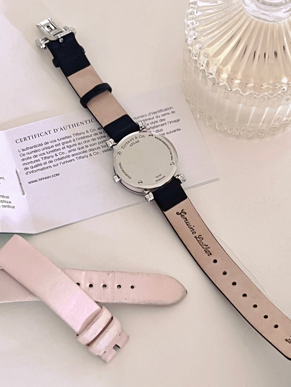 오리지널 핑크 세틴 스트랩은 아무래도 생활 사용감이 있어요. 잘 조화되는 레더 스트랩으로 제작 교체하여 오리지널 버클과 함께 체결해 놓았어요. 추후 다른 재질과 컬러로 교체하여 착용하시면 또 다른 느낌으로 유용하게 착용하실 거에요. 케이스와 글래스 내부 다이얼 모두 깨끗한 상태입니다. 새상품은 아니니 아주 예민하신 분은 구매 피해주세요. 내부점검과 베터리 교체 완료된 아이템이라 오래도록 예쁘게 쓰실거에요.