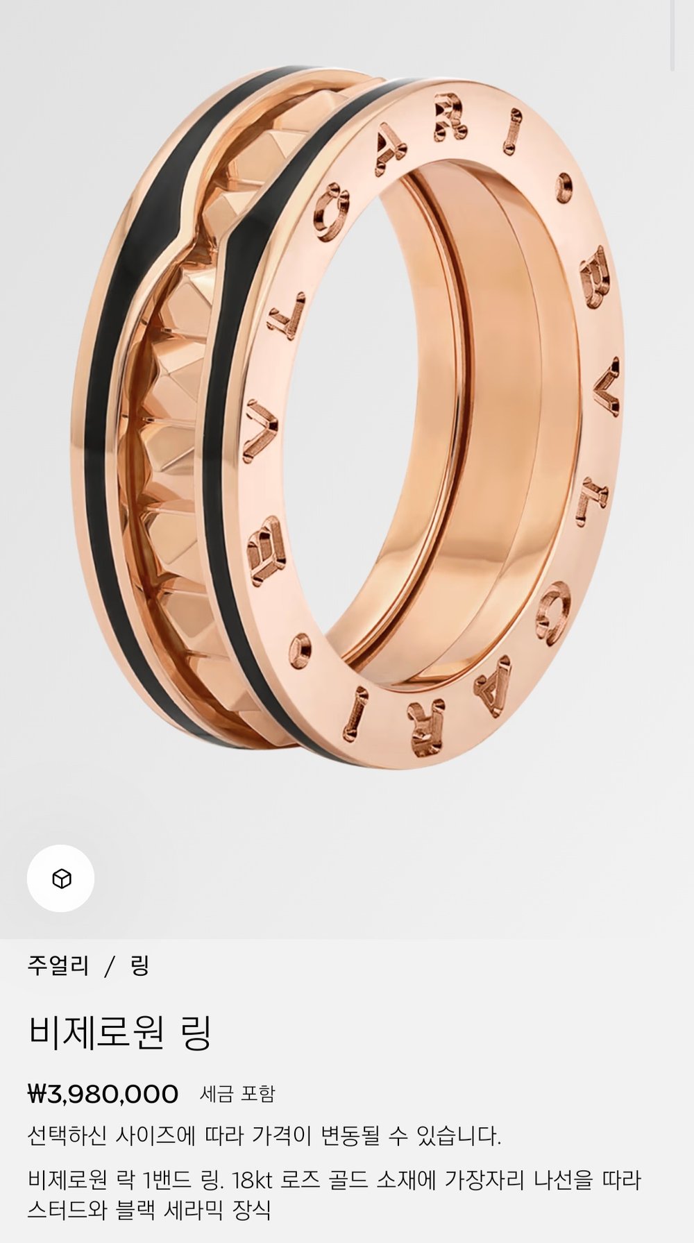불가리 비 제로 원 3밴드 링로즈/핑크골드, 유럽 63 / 미국 10 / 한국 23 호