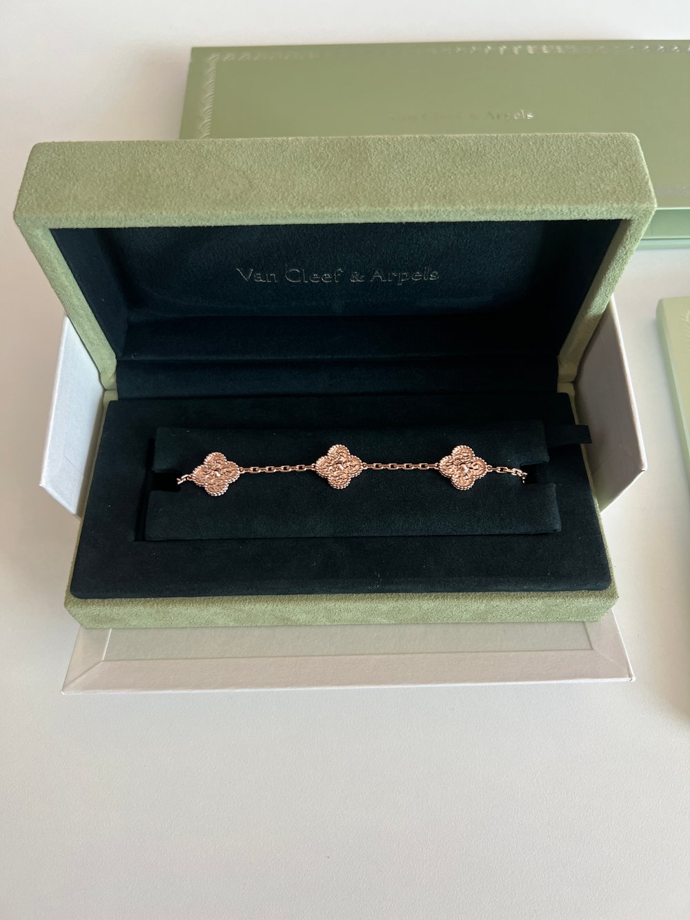 반클리프 아펠 알함브라 해머드 5모티브 브레이슬릿빈티지, 로즈/핑크골드, 19cm