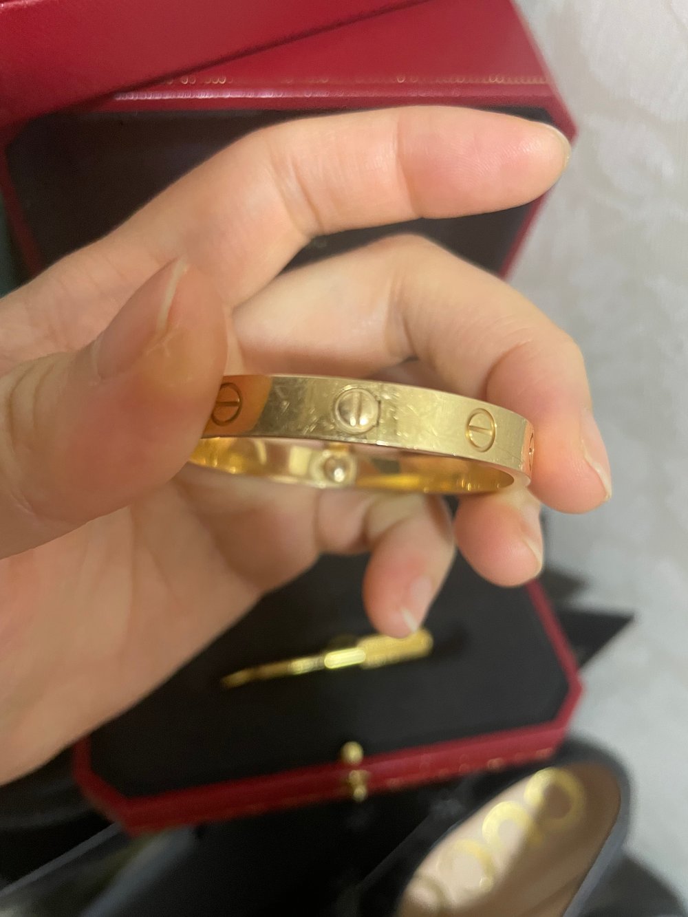 러브팔찌 미듐 일본서 사면서 관세때려맞고 화김에 러브 클래식 여기서 질렀는데 너~~무 만족스러워요 2차검수에 중간1차검수때는 사진까지 보내주시고 배송도 월요일결제 토요일에 받았어요 택배로 받으면 불안?한가?했는데 중간에 누가 못뜯어요 테이프조차 두꺼워요~제가 일본 매장에서 제가 샀을때보다 더 꼼꼼한구성품-다들 구성품관리잘하시구요-판매자님께믿음가고 그런 판매자님이 판매한사이트라서 믿움가구요 미듐은 안하게되고 클래식만 하고있네요 6개월 무이자 할부도 넘나 좋아요 일시불이면 부담스럽죠~내스스로선물인데 할부끝나면 사야지하면서 계속 들락거립니다